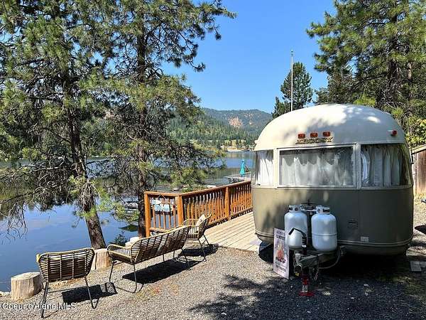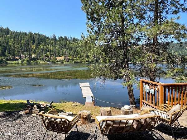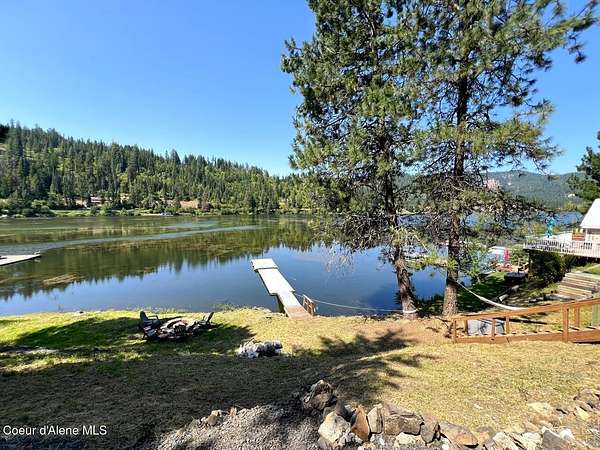 Est $2,415/moThis .19 acre waterfront parcel features 109 feet of Black Lake frontage, including a 70-foot permitted dock and year-round access. Boat-able access runs from Black Lake directly to the Coeur d'Alene River, with connections to the Chain Lakes and onward to Coeur d'Alene Lake. The property offers expansive lake views. Additional features include water rights, a deck, RV parking with electrical hookups, septic, and a graveled driveway.