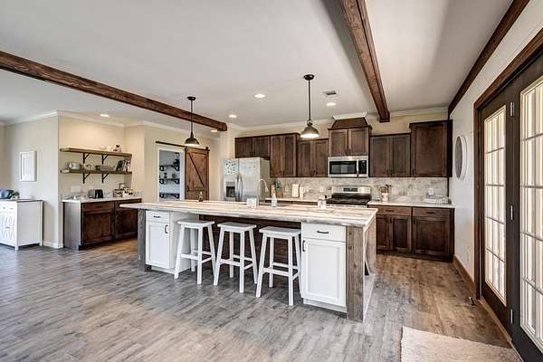 Escape to wide open space with this stunning 28.9-acre property featuring expansive territorial views, flat and fully usable land, and a barely lived-in 2,257 sq ft modular home. This inviting open floor plan with a spacious kitchen, huge walk-in pantry, large utility room with ample storage, and four comfortable bedrooms are all crafted for relaxed and functional living. Designed for lasting quality, the home blends traditional craftsmanship with modern efficiency. Constructed off-site with precision, it features 2x4 walls, 2x8 floor joists, and #1 and #2 grade lumber — ensuring exceptional strength, durability, and energy performance.
