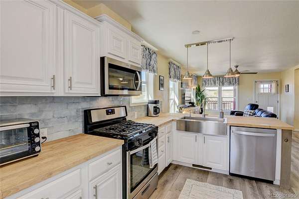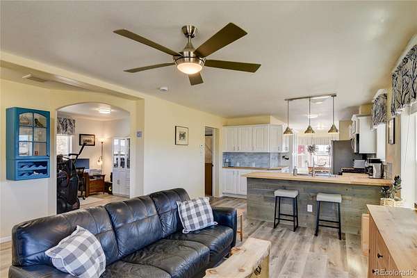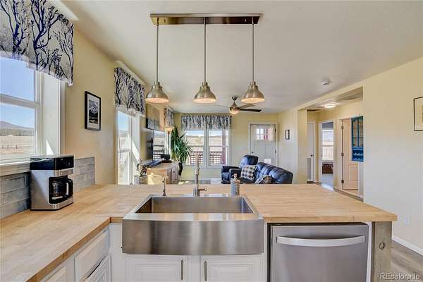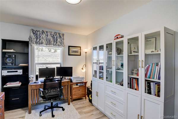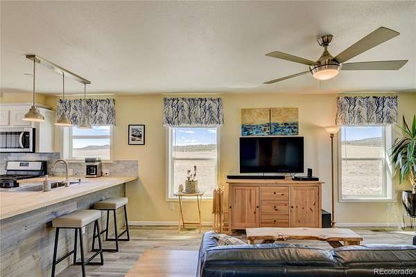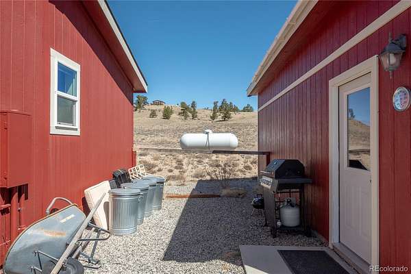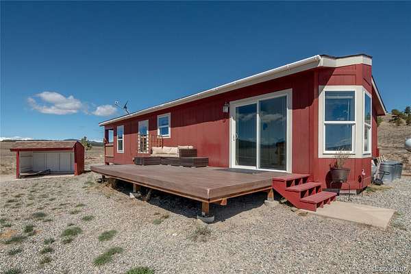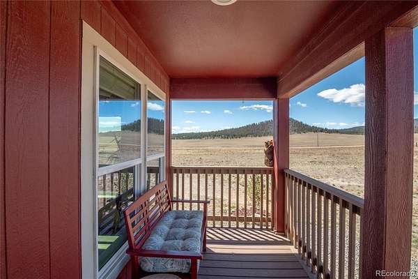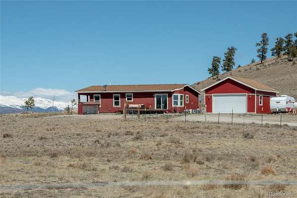 Very cute home on 6 acres of Colorado paradise! Two bedrooms plus an office with 2 full bathrooms gives you plenty of space to feel comfortable. You will notice the newer stainless steel appliances in the bright kitchen, oversized primary bedroom with en-suite bathroom, and even 3 acres of electric fencing around the property making it a dog paradise to run. The detached heated garage has lots of space for your hobbies and toys. The dining room has a beautiful bay window with incredible views you will love. The kitchen has a butcher block peninsula, farmhouse sink, and generous storage. You will be impressed with the views of Buffalo Peaks and the stargazing on the deck at night is amazing. Sunrises and sunsets are special in this quiet location of ranch of the Rockies. Custom features in home include a barn style door in primary bedroom, composite decking, and tile flooring. The HOA includes central trash service, dog park, pavilion, and a stocked fishing reservoir for all property owners and guests. Centrally located with easy access to Colorado Springs and Denver. This is a fantastic home base for hiking, biking, fishing, 4-wheeling, and overall exploring! Your dream home is waiting for you. Come check it out.