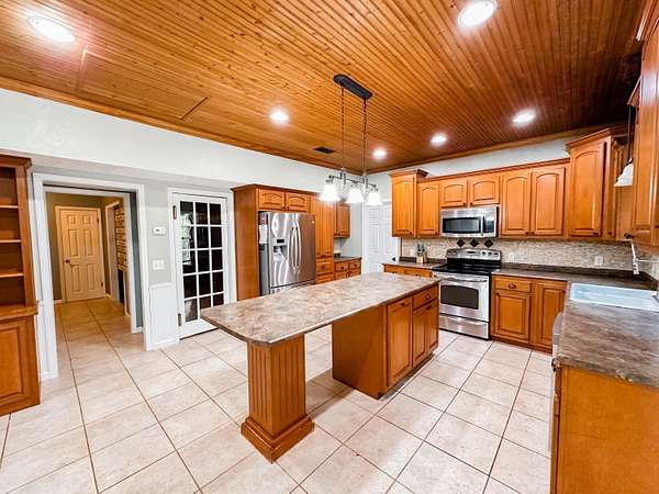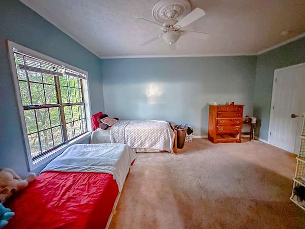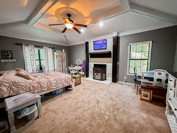 Spacious and inviting, this 4-bedroom, 2.5-bath home on 2.1 acres in Upper North Columbus is priced to sell! From the moment you arrive, the large front porch sets the tone for relaxation, while the back deck and patio offer plenty of space for entertaining or quiet evenings outdoors. Inside, the kitchen stands out with abundant cabinet and counter space, plus a charming beadboard ceiling. The large living room features new vinyl plank flooring, a cozy fireplace, and direct access to the deck. One bedroom is conveniently located downstairs with patio access. Upstairs, the spacious primary suite offers a fireplace of its own and a generous bathroom. With room to spread out both inside and out, this property blends comfort, character, and value.