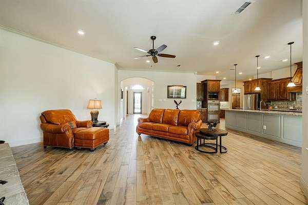 Step outside to the expansive covered patio designed for year-round enjoyment, featuring an outdoor kitchen, cozy fireplace, and ceiling fan. With plenty of land, the possibilities are endless--add a pool, guest house, workshop, or create walking and biking trails. Recent updates include a new roof (2023) and the reassurance of a builder warranty through 2027. Last year taxes was a total $10,500.