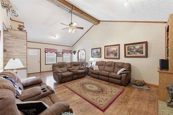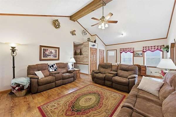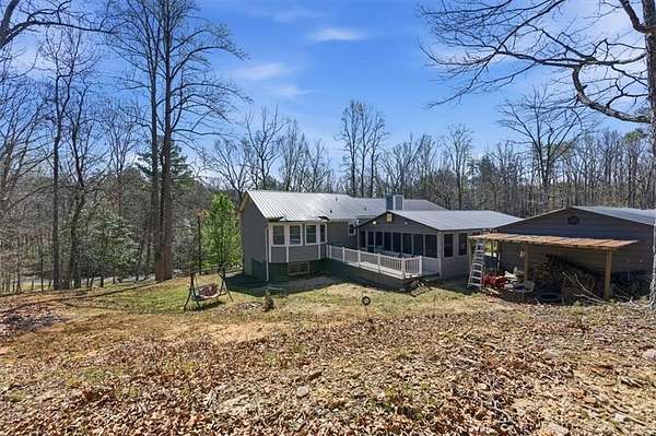 Escape to Your Private 5-Acre Retreat in Cherokee County! This meticulously maintained, one-owner ranch on a finished basement is the ultimate find with NO HOA. Bring your Rv, Boat, Work Equipment and toys. Rest easy knowing the big-ticket items are done: a brand-new metal roof, new windows, a 3-year-old tankless water heater, and new insulated siding with a lifetime warranty. Inside, you'll love the spacious kitchen with new flooring, tons of cabinet space, & an eat-in breakfast area. The primary bedroom is oversized, with a large bathroom that includes a double vanity, a step-in shower& a 6 ft jacuzzi tub. Secondary bedrooms have tons of room and share a shower/tub combo bathroom. The basement has another large living space, a full bathroom, a grand bedroom and another garage/workshop. Step outside to the stunning, newly screened-in porch featuring tongue-and-groove ceilings and a massive 12x24 deck. The crown jewel? A phenomenal pole barn on a 50x30 concrete slab, complete with a covered porch, covered carport, second kitchen, and half bath-perfect for a guest suite, man cave or the ultimate "party barn." With a detached garage w/12 ft ceilings, there is plenty of space for a workshop. Enjoy country living all within minutes of shopping and dining.