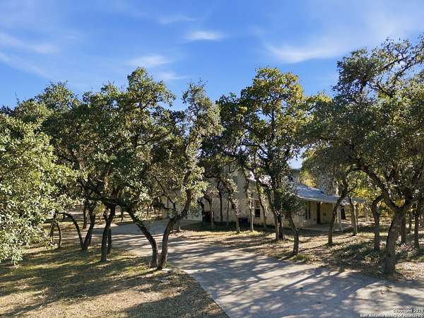 Spacious 2-story home situated on 3.82 acres in the highly desirable Guadalupe River Estates community, offering a rare combination of usable land, mature trees, and private neighborhood access to the Guadalupe River. This property has been well-maintained with numerous recent upgrades, making it an excellent option for buyers seeking acreage, privacy, and meaningful mechanical improvements already completed. The home offers approx. 2,193 sq ft with 4 bedrooms, 2.5 baths, a formal dining room, and a comfortable living area featuring a real wood-burning fireplace. The kitchen includes a pantry, breakfast area, and adjoining dining spaces. An indoor utility room provides added convenience. The layout offers flexibility for a variety of needs, from everyday living to hosting guests. Significant property improvements include a Generac whole-home generator powered by propane, providing automatic backup power for the entire home. Additional upgrades include a metal roof, heat pump, recent water heater, and a recent Kinetico water softener. The property is serviced by a water well and septic system, allowing for lower utility costs and no city taxes. A recently installed front ranch fence and gate with solar opener enhances security, curb appeal, and ease of access. Outdoor living is a major highlight with an in-ground swimming pool, multiple outdoor seating areas, and room to expand or customize. A paved driveway leads to a 2-car attached garage plus an impressive 3.5-car detached garage with an AC-equipped workshop, ideal for projects, storage, or hobby use. Several outbuildings and covered areas provide additional storage options. Guadalupe River Estates offers private river access for property owners, including a park with picnic areas, covered pavilion, walking space, and a pickleball court. Located in Comal ISD with convenient access to highway corridors, this property offers a peaceful Hill Country setting while still being close to shopping, dining, and daily conveniences. This home presents an excellent opportunity for buyers seeking acreage, privacy, neighborhood amenities, and a property with major systems and upgrades already completed.
