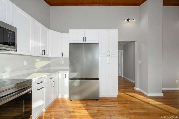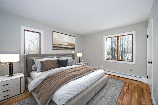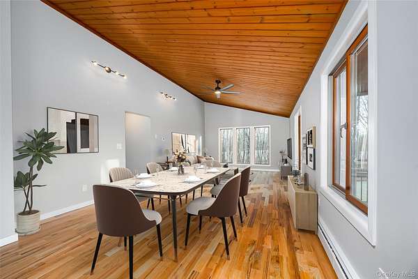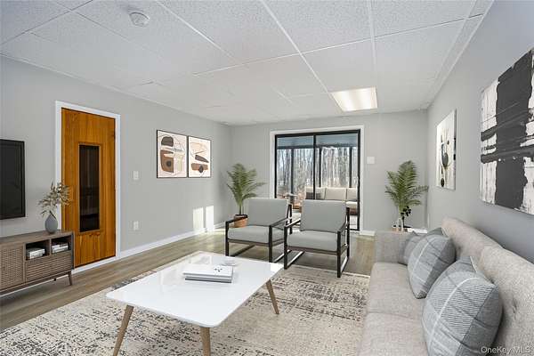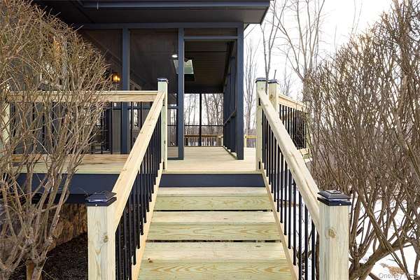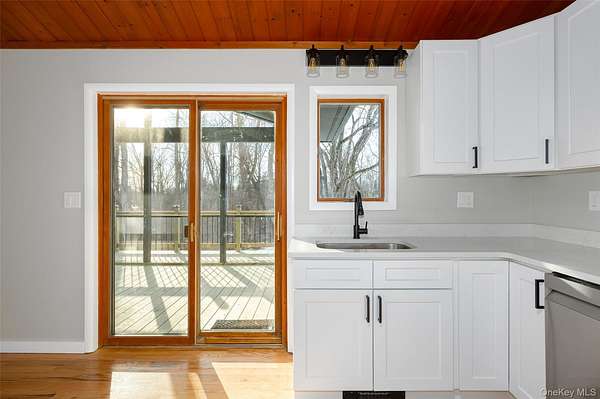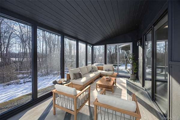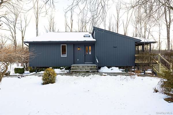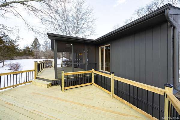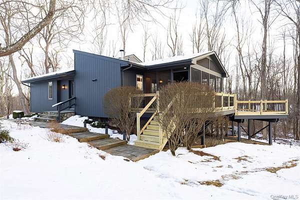 Welcome home to this contemporary retreat set on 5 peaceful acres in Pleasant Valley, located in the desirable Arlington School District. This 3-bedroom, 2 full bath home features over 2300 sq ft and offers a unique blend of space and style. Step inside to a welcoming foyer that opens to an airy, open-concept layout with vaulted ceilings and an abundance of natural light. To the right, you'll find a beautifully updated kitchen featuring white shaker cabinets, quartz countertops, and stainless-steel appliances. The generous dining area flows seamlessly into the spacious family room, making this home ideal for everyday living and entertaining. The dining area leads to a large screened-in porch, which overlooks a huge private deck, perfect for enjoying the surrounding natural setting. Down the hall are two well-sized bedrooms with ample closet space, an updated full bathroom, and a separate laundry room. On the opposite side of the home is the primary bedroom, offering its own updated en-suite full bathroom and a walk-in closet for added comfort and privacy. The finished lower level expands your living space with endless possibilities for a family room, home gym, recreation room, media space, or additional living area. Double sliding doors lead to a beautiful sunroom, another quiet and serene spot to relax and unwind. This level also includes a spacious sauna, utility room and garage access. This is a rare opportunity to enjoy contemporary living, privacy, and versatility, all in a beautiful country setting just minutes from everyday conveniences. Schedule your showing today!