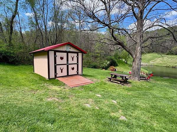 For sportsmen and shooting enthusiasts, the property includes 100-, 200-, and 300-yard rifle ranges, along with a dedicated pistol range. The acreage also boasts a fruit orchard with mature apple and pear trees, offering both beauty and seasonal harvests.