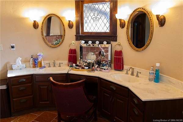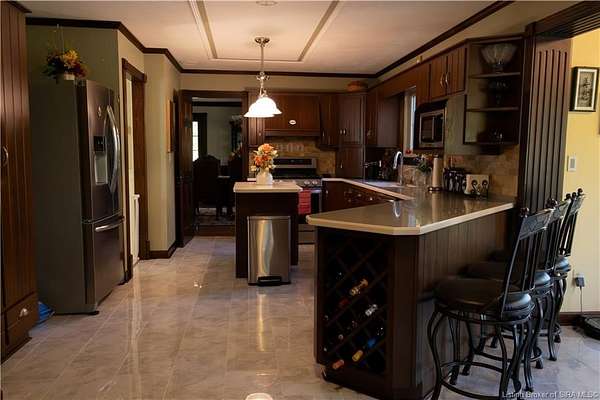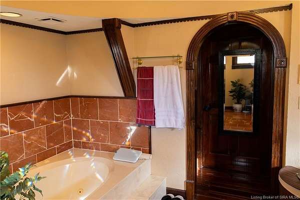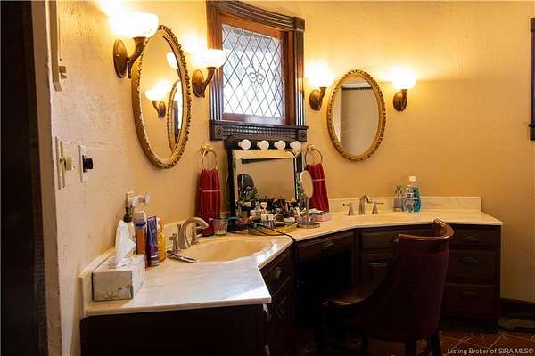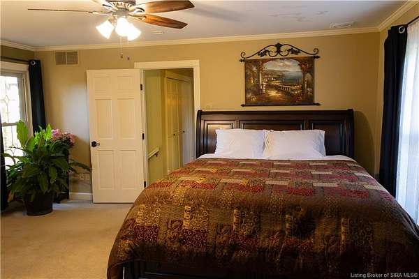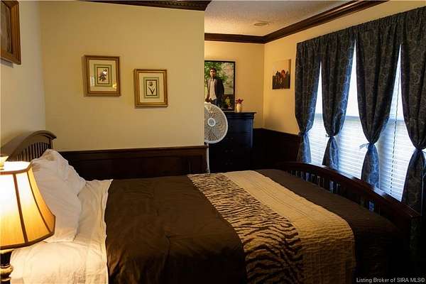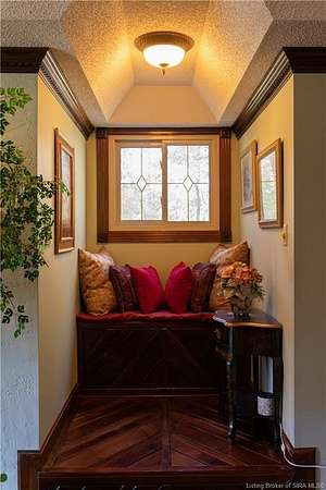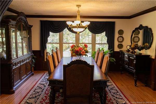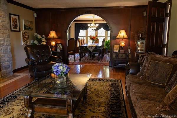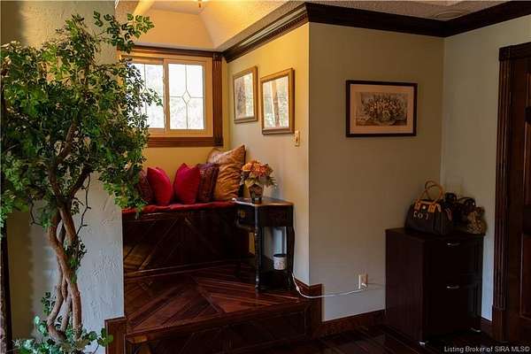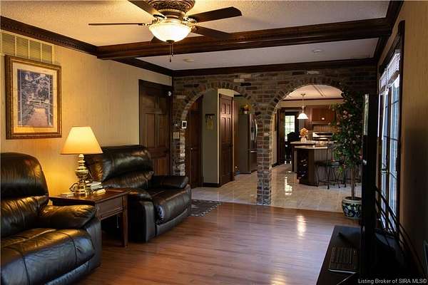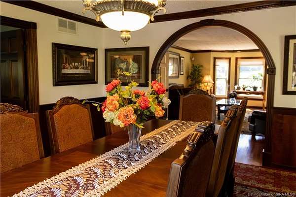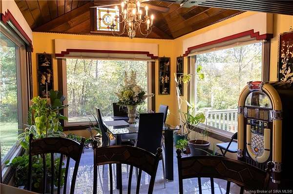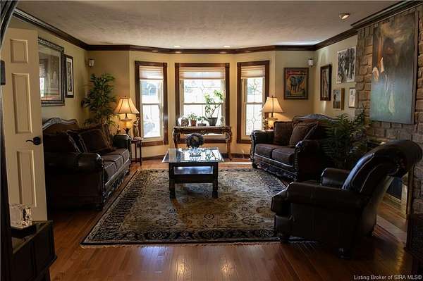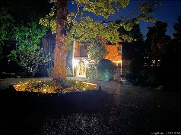 Unique - One-of-a-kind English Tudor Revival home! A truly spectacular, spacious, elegant and charming home that you're sure to fall in love with. Property appraisal completed by Akrivis Real Estate Valuation Services, 10/27/2025. The home has 4 bedrooms, 3.5 baths, a sitting room, dining room, family room, breakfast nook/sunroom, courtyard and a recreation room in the basement. There is a 2-car garage and also a large, attached outbuilding good for mowers and tools. This luxurious property is located in a pristine neighborhood, only a minute away from the interstate and Corydon's shopping center, only 20 minutes to the Sherman Minton Bridge and only 30 minutes to downtown Louisville, KY. The house is on 2 private acres, and the property includes a fully wooded acre to the North with the rest of the house surrounded by massive old growth trees, providing incredible privacy and the feeling of being immersed in nature. The home has had numerous renovations to include: hardwood flooring throughout the first floor living area, elegant porcelain tile in the kitchen, huge double pane picture windows in the breakfast nook/sun room, updated double pane glass inserts with interior lattice on the main floor doors, new kitchen appliances in 2014, new gas stove in 2021, new top of the line gutter guards in 2022, new roof shingles in 2015, new water heater in 2015, new furnace in 2014, new attic insulation and new chandelier fixtures in the dining room and the breakfast nook/sun room.