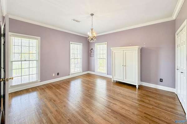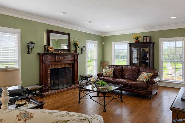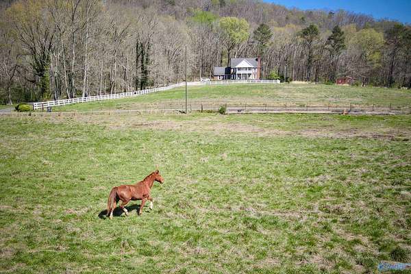 Experience the charm and space of true country living with this beautiful 3-bedroom, 3-bath all-brick estate nestled on 38 picturesque acres-perfectly suited for horse lovers or anyone seeking room to roam. This property offers a rare combination of privacy, functionality, and convenience, located just 30 minutes from both Huntsville and Decatur. Step inside to find warm, inviting hardwood floors that flow throughout the home, creating a timeless and comfortable atmosphere. The spacious layout includes a bright and airy sunroom, ideal for relaxing with your morning coffee or enjoying peaceful views of the surrounding land.