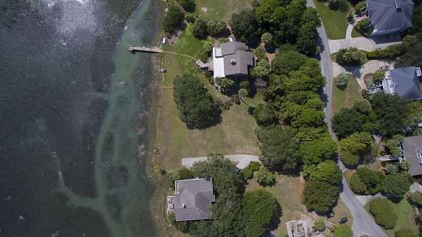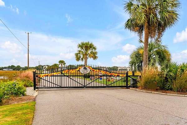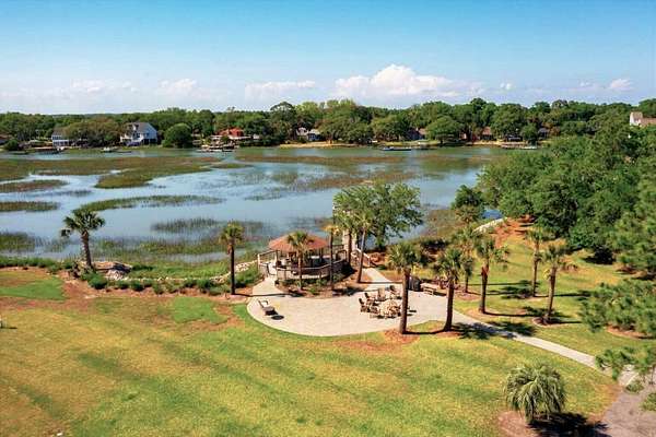 The lot is perfectly positioned in a gated waterfront community that features a shared deepwater dock on the Folly River, ideal for fishing and sunset watching.