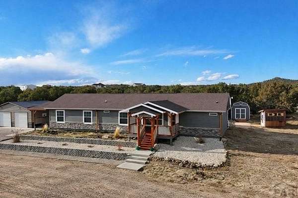 Welcome to 261 Orland Way in Walsenburg, Colorado, located in the beautiful gated community of Black Diamond. Conveniently located next to the Walsenburg Golf Course and Lathrop State Park. This newly built 2,280 sq ft home features 3 bedrooms and 2 baths, sitting on 2.96 fully fenced, breathtaking acres with stunning panoramic views featuring the Spanish Peak. Enjoy the views and serenity from the covered deck or the covered patio, which features a built-in outdoor kitchen. Bright, open living spaces are filled with natural light and mountain scenery. A detached garage, lean-to, and carport provide excellent storage for vehicles, tools, or recreational gear. Enjoy peaceful, private living just minutes from town, near the Spanish Peaks Regional Health Center, and just a short drive to the quaint town of La Veta. Experience luxury and seclusion while being close to amenities, acreage to roam, and unforgettable Colorado views in one exceptional property