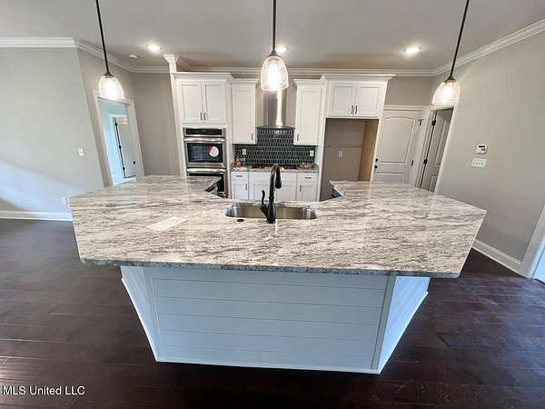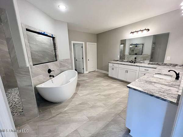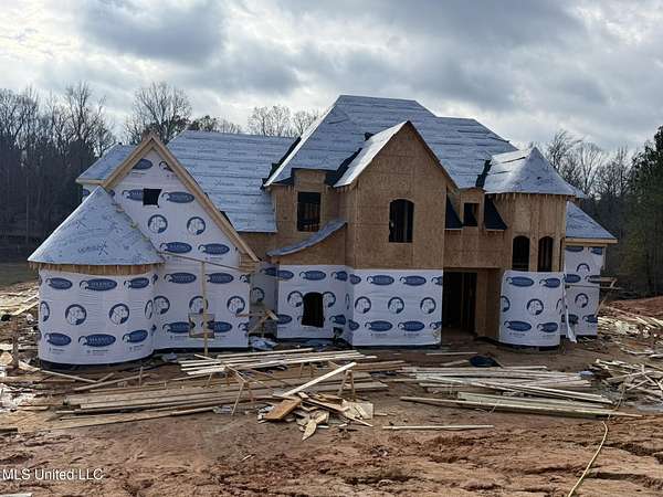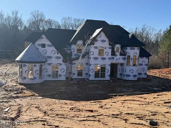 IMPRESSIVE French Country home now under construction - right off of Red Banks Road ~ just one mile from Hwy. 78/22. Subdivision offers large lots, amazing location, and no city taxes. Home is seated on a 2.23 acre lot. CONSTRUCTION HAS ALREADY BEGUN on this plan which offers 3,349 s.f. with (6) Bedrooms, (4.5) Baths and is a split/open floor plan. The primary Bdrm, one additional Bdrm, family room, formal dining room, laundry room plus 2 baths - all on main level. Upstairs, you will find an additional (3) bedrooms PLUS a media room AND (2) more full bathrooms (1 is a Jack & Jill). This home boasts of sophistication with its beautiful rounded turrets, brick and stone accents, elegant interior and exterior finishings, walk thru shower, rich granites, wood floorings, bull nose edging, ornate custom ceilings and stacked stone fireplace and custom built-ins in the great room. So many unique and beautiful features to this home...it is a must see! The kitchen offers custom cabinets, granite, SS appliances, gas range, double ovens, breakfast bar & room, SS appliances. The Primary Bedroom offers tray ceiling, wood flooring, salon bathroom with ceramic tile, center soaker tub with walk through shower, granite/double vanity and large walk in closet. Other home features include (3) car garage, crown molding, covered patio & front porch, tankless water heaters, wood treads, wrought iron railing, gutters, security alarm, security lights, and SO MUCH MORE!!! Come customize your home today!! Builder reserves the right to tweak all plans/colors/elevation as builders try to make all homes unique. Pictures from previously built home. Est. Completion Date is February 2026.
