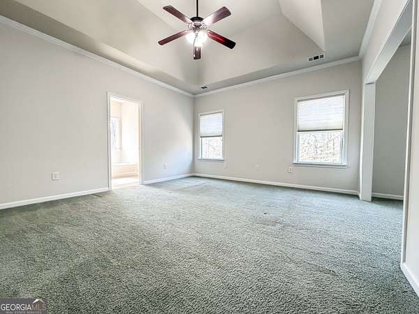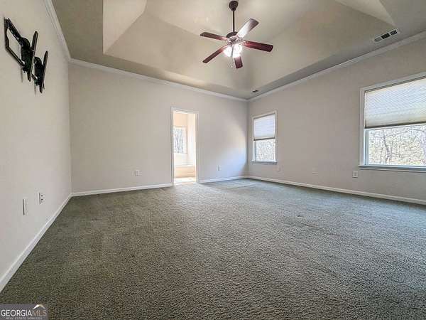 MOVTIVATED SELLER! MOVED--MAKING THIS FABULOUS HOME READY FOR IMMEDIATE OCCUPANCY! A Huge 1.55-Acre Lot in Desirable Swim/Tennis Community! This beautifully styled Craftsman home sits on a rare 1.55-acre lot in the sought-after Senators Ridge neighborhood. Enjoy the charm of a cozy covered front porch that opens into a grand entry foyer with hardwood flooring throughout. The efficiency kitchen is a dream for any home cook, featuring solid-surface counters, a pantry, and rich maple cabinetry. There's a formal dining room, a breakfast nook, and a long breakfast bar for additional seating. The spacious great room is filled with natural light from multiple windows and offers a cozy gas fireplace-perfect for gatherings, all open to the kitchen and dining areas. Step outside to a large, private back deck ideal for grilling and relaxing, with peaceful, forest-like views. Looking for a primary suite on the main level? This floorplan offers a true Master on Main, plus two additional main-level bedrooms! Upstairs, you'll find a large bedroom with a full bath-great for guest privacy, a home office, theater room, gym, or even the "messy playroom." The master suite includes a private sitting room (originally a 4th bedroom on the main), a luxurious en-suite bathroom with a soaking tub and separate shower, a double-sink vanity, and a massive walk-in closet. The full, daylight basement offers tons of storage and is ready for future expansion as it's already stubbed with plumbing for a bath. This basement enjoys walk-out backyard access to a beautiful acres of natural woods, it's a peaceful setting filled with wildlife and cheerful sounds of nature. COMMUNITY PERKS: Senators Ridge is one of Paulding County's most desirable gated communities, offering resort-style amenities: a pool with a slide, clubhouse, tennis & swim; basketball courts, pickleball, and a playground. Located in the top-rated North Paulding school district, you are just minutes from Cartersville, Acworth, West Cobb, and major commuter routes. BONUS NOTES: * Originally built on a 0.52-acre lot, the owners later purchased the adjacent 1.03-acre parcel, merging the two into a single 1.55-acre lot-offering unmatched privacy and potential for future division. * The master suite's sitting room was once a fourth bedroom and can easily be converted back, if desired. DO NOT miss this rare opportunity to own a spacious, flexible home nestled in nature with all the benefits of a vibrant swim and tennis community!