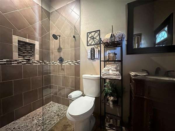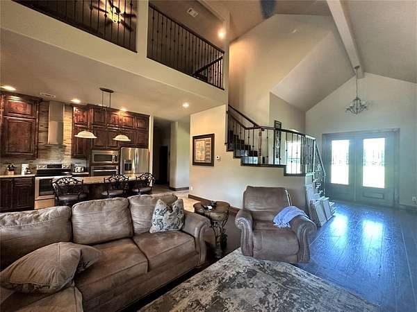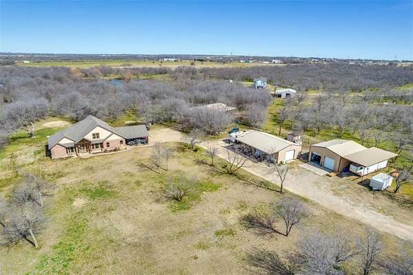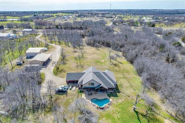 Amazing opportunity to own a beautiful custom home on 11 acres. Very secluded & private. Fully fenced with awesome horse barn (50x60) with 5 stalls,30x50 shop with apt & brand new shop (40x30) with carport. Shops are well insulated with elec & water. Home is energy efficient with foam insulation throughout. Awesome floor plan with lovely wood flooring. Master BR & 2nd BR with full bath down. Master BR features French doors to back patio, trey ceiling, fp, walk-in closet, garden tub, lg tile shower, sep vanities. Formal dining & custom study. Kitchen, with granite, tons of cabinets, walk-in pantry & beautiful tile floor, opens to spacious LA with fp & wall of windows overlooking lg, cov patio & sparkling pool.3rd BR with full bath & game room up. Addl room off the game room could be 4th BR. 10’ dbl mahogany entry door, decked attic space. Owner is installing new Liftmaster electronic gate at the entrance. New roof, new pool equipment, new tankless water heater. 10 acres is currently ag exempt. No restrictions. Addl 11.88 acres available.