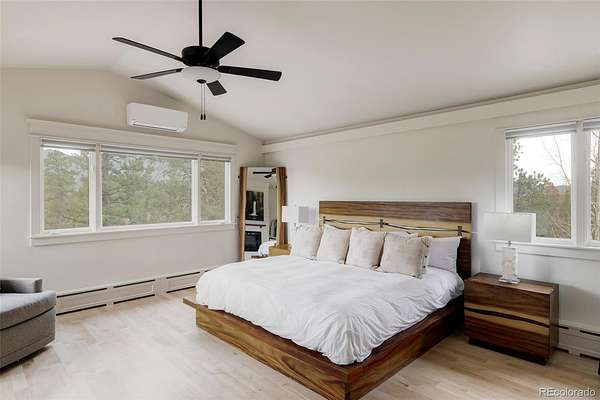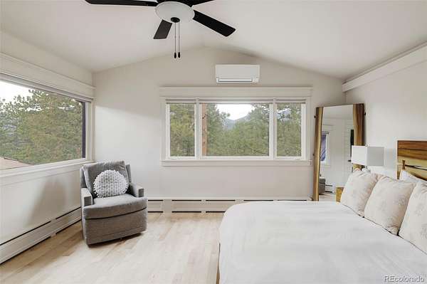 Designed for ultimate interior privacy, the four bedrooms are thoughtfully spread throughout the home, including an upper-level primary suite with world-class views. Two of the spacious secondary bedrooms enjoy en-suite bathrooms! Nearly every room in this home features jaw-dropping views! The walkout basement is an entertainer’s dream, featuring a game room, a dedicated bunk room, and a custom-built kid’s hideout, with direct access to the gardener's dream greenhouse! Outside, the property is a wildlife lover's paradise where elk, deer, and turkey roam among towering evergreens. Enjoy an abundance of bird species, great for bird watching. Exceptional amenities include an 8 person hot tub, a brand new concrete tile roof with owned solar panels, new boiler system, and ample storage between the 2.5-car attached garage and an additional 1-car detached garage. Located just 10 minutes up Upper Bear Creek from the Evergreen Golf Course and Lake, this home offers a rare combination of secluded mountain living with the convenience of all Evergreen has to offer.