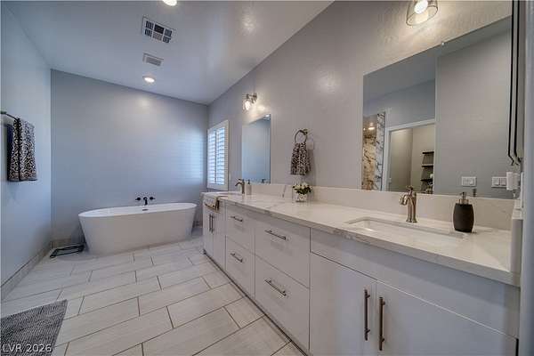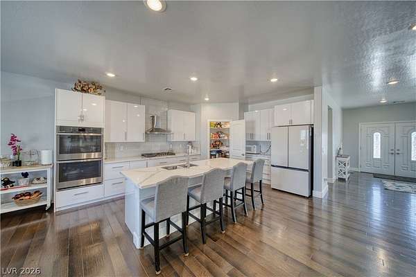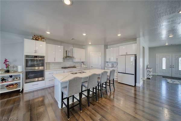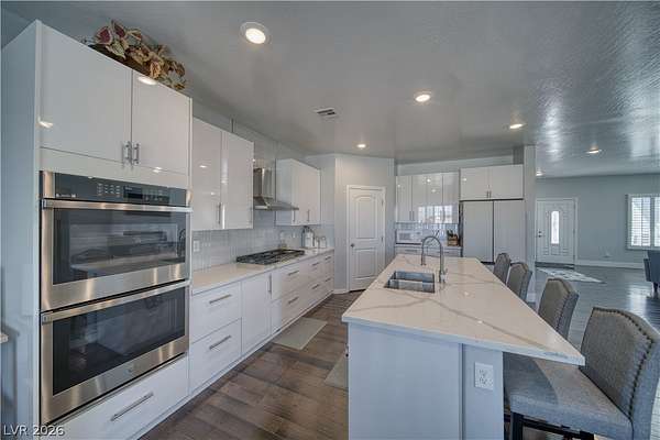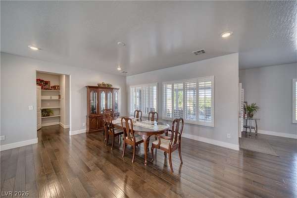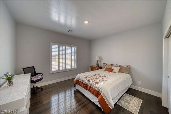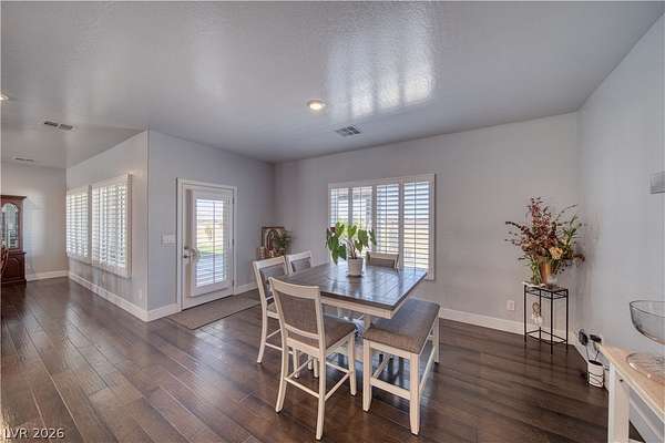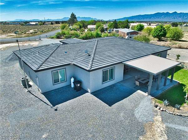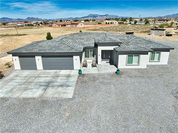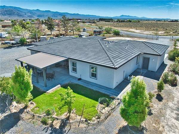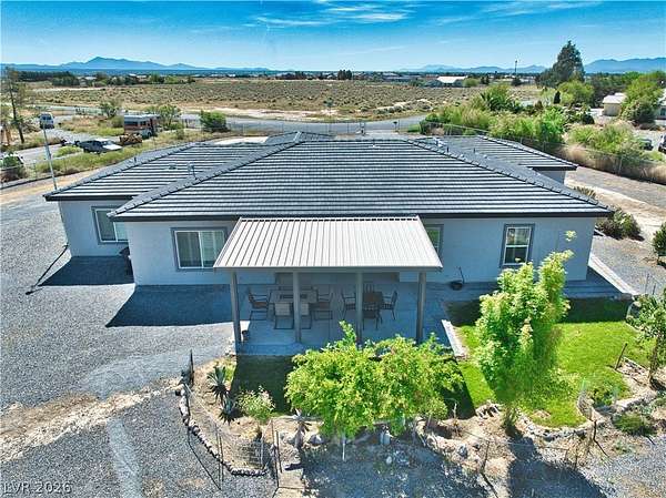 Welcome Home to This Absolutely Stunning 2,603 Sq. ft. Custom Home Situated on a Spacious 2-Acre lot in Pahrump! This exceptional property offers 4 bedrooms, 3 bathrooms, including two primary suites, making it perfect for multi-generational living or hosting guests in comfort and style. Step inside to discover a thoughtfully designed open floor plan enhanced by Elegant Custom Plantation Shutters throughout, adding timeless elegance and privacy to every room. Kitchen has Quartz Countertops, White Custom Cabinets with plenty of storage space and Stainless Steel appliances including an Oversized Island with sink. The Backyard features a Covered Patio and Garden area with Grass, Rose Bushes and Fruit Trees, creating a serene relaxing setting. For Hobbyists or Extra Storage needs, you'll love the plywood insulated Shed complete with power and storage space. Make an offer today!