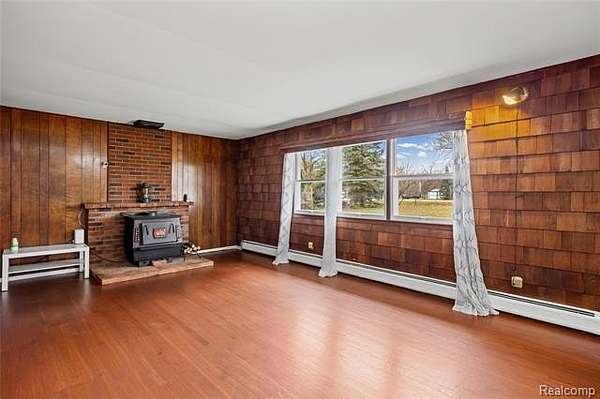 Welcome home to this charming country ranch in Canton, situated on 5 beautiful acres! This 3 bedroom, 1 bath home offers the perfect blend of rural charm and modern updates. Step inside to an open concept layout that seamlessly connects the living area to the kitchen. The living room features warm newly refinished hardwood floors and classic wood paneling, while the updated kitchen includes gray shaker cabinets, stainless steel appliances, new backsplash, and marble-look countertops. Hardwood flooring flows throughout adding warmth and character. Fresh Paint, Updated Bath, New exterior facia boards and gutters. The full unfinished basement provides endless possibilities for additional living space, storage, or a workshop. Basement has sump pump and warranty for waterproofing & foundation work. Outside, you'll find multiple outbuildings including a classic red barn, workshop, and storage sheds--perfect for hobbyists, gardeners, or small livestock. The 5 acre parcel backs to Fellows Creek Golf Course and offers plenty of space and privacy for outdoor activities, gardening, or simply enjoying nature. Some outbuildings need updating but provide ample storage and potential. Enjoy peaceful country living while being just minutes from Ford Rd shopping, dining, and expressways. Move-in ready--schedule your private showing today! BATVAI redid floors, redid one bedroom, new drywall, new bathroom, fascia fixed outside.