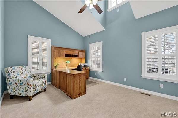- Ceiling Fan(s), Custom Cabinetry, Double Vanity, Eat-In Kitchen, Entrance Foyer, High Ceilings, Kitchen Island, Open Floorplan, Pantry, Recessed Lighting, Separate Dining, Separate Shower, Soaking Tub, Solid Surface Countertop(s), Vaulted Ceiling(s), Walk-In Closet(s), Workshop/Hobby Area