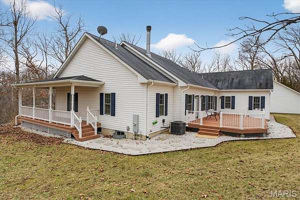 Meticulously maintained custom-built home situated on 3 beautiful acres! A charming covered wraparound front porch welcomes you into a vaulted entry foyer that flows into the formal dining room. The open floor plan features a stunning great room with vaulted ceiling and a gorgeous stone wood-burning fireplace, seamlessly connected to the kitchen offering abundant cabinet space, center island, hardwood floors, breakfast area, and pantry. Main floor laundry includes a full bath for added convenience. The divided bedroom floor plan provides privacy, with a spacious primary suite featuring a large walk-in closet and luxury bath with double vanity, separate tub, and shower. Two additional bedrooms are located on the opposite side of the home and share a full bath with tub/shower combo. The finished lower level boasts a massive family room with dry-stack stone ventless gas fireplace, built-in speakers, and a versatile bonus room ideal for a sleeping area, office, or workout space, plus a large storage area. Car enthusiasts and hobbyists will love the fully insulated drywalled 25x29 3-car attached garage and the 27x27 heated oversized detached garage complete with workshop area, room for vehicles, golf cart or side-by-side, and loft storage. The expansive concrete driveway offers ample additional parking. This exceptional property truly has it all included vinyl coated aluminum seamless siding —don’t miss your opportunity to call this DREAM home your own!