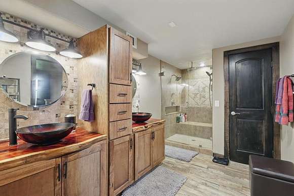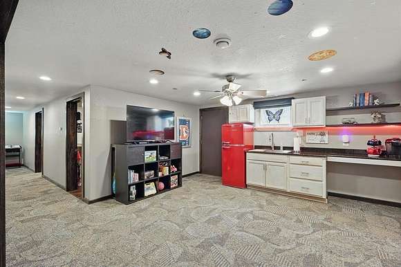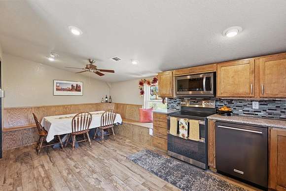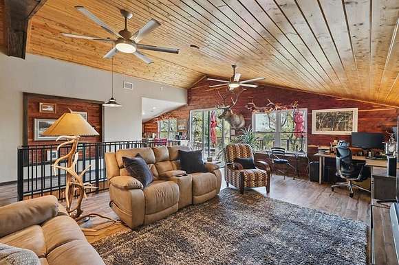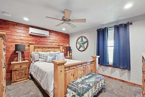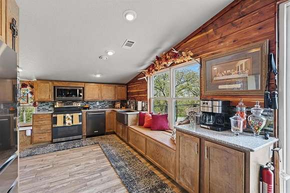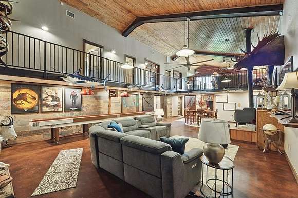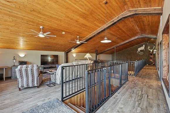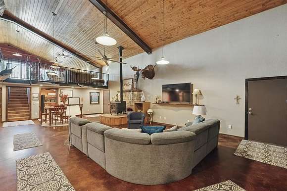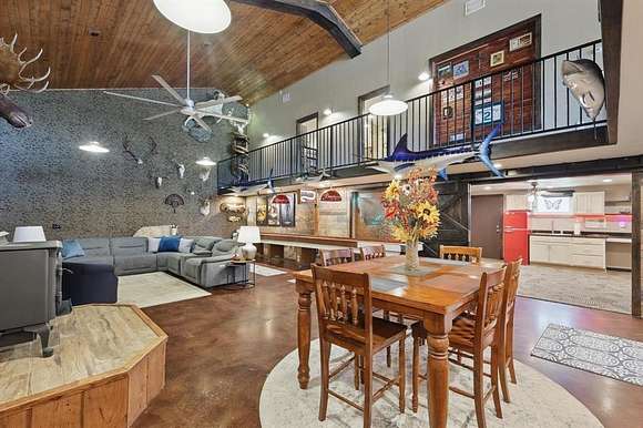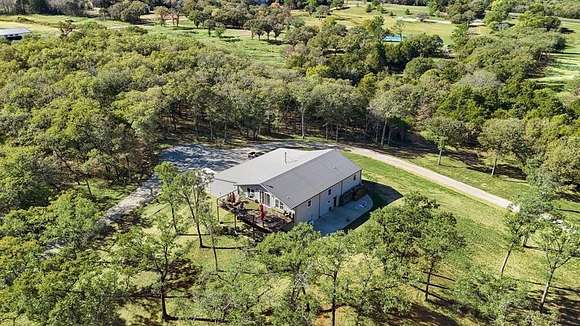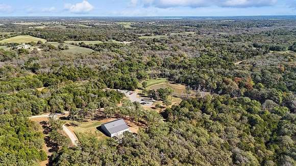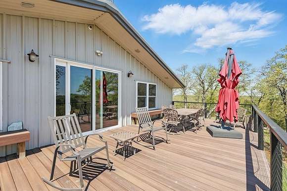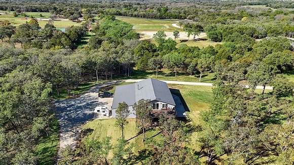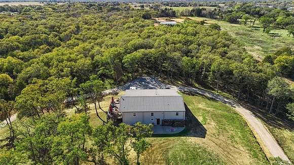 Presenting an exquisite ranch estate with 146.7 sprawling acres of prime topography, approximately 1,500 ft of highway frontage with a newly constructed pipe and cable fenced entrance, a 4,800 sq ft saloon style architectural masterpiece, 3 ponds varying in depth and stock offering pristine landscape and views, a wooded creek running along the northern border of the property feeding directly into Lake Texoma, and more. The property boasts exceptional accessibility, with a custom road built 100 ft in width that runs the length of the property to serves as access to the home, multiple different cleared pad sites, etc.. The custom barndominium sitting atop the highest elevation on the property to offer alluring views boasts an inviting and open space with an excess in accommodations and efficiency, featuring 4 bedrooms, 2.5 bathrooms, 3 living areas, an in law floorplan with a private kitchenette, an attached workshop or tool room, and access to the oversized garage space with ample electrical for various types of vehicles. The home has a built in energy recovery ventilator for moisture control, water filtration system, smart home accessibility on the ground floor, and technologically advanced security system patrolling the property. The carefully orchestrated thought put into this property is unmatched by its competitors, as all pipelines and natural gas lines have been removed or capped with releases signed by oil and gas companies. Convenient infrastructure is set in place to allow the possibility of expansion, with multiple electric boxes, a water well and co-op water access allotted for versatility, and more. The abundance of wildlife conforms to both enthusiasts and Grayson County ag exemptions, making this estate favorable to hobbyists and tax affordability. To experience the true exclusivity and versatility of this property, and its list of commendable attributes, you must see it in person. Come transform this idealistic ranch into your dream homesite.