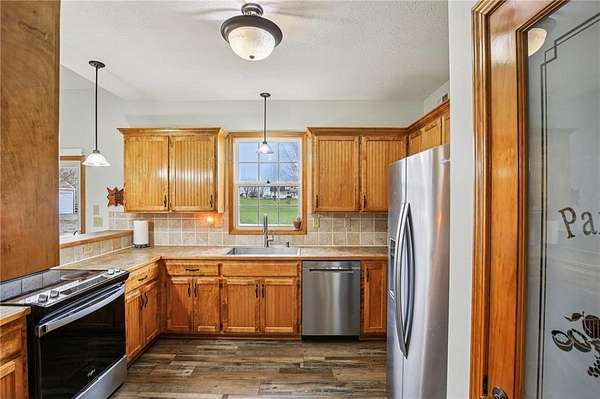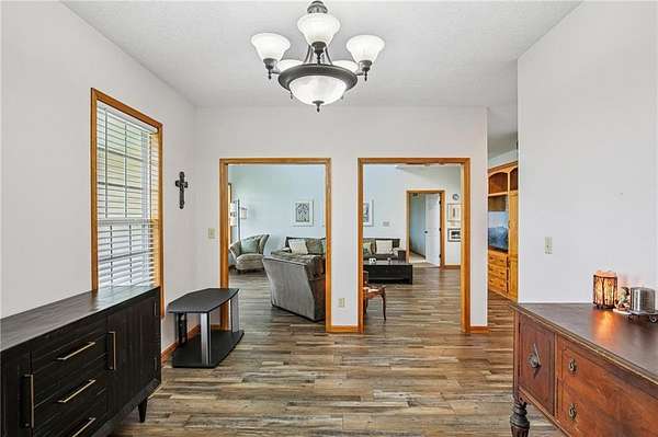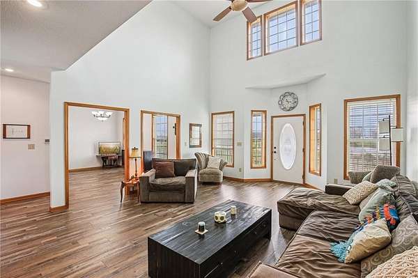 Set on a beautiful stretch of land in Pleasant Hill, this inviting home offers the perfect blend of space, comfort, and privacy. The setting feels peaceful and tucked away, with a long drive welcoming you in and plenty of room to enjoy the outdoors. Inside, the layout is warm and functional with an open feel that makes everyday living and entertaining easy. The main level features a spacious primary suite for added convenience, while additional living areas provide flexibility for gathering, relaxing, or working from home. Vaulted ceilings and natural light create an airy, comfortable atmosphere throughout. The kitchen offers ample storage and flows nicely into the dining and living spaces, making it a natural hub of the home. Downstairs, the walkout basement adds even more potential for future finishing, storage, or recreation. Step outside to enjoy the surrounding acreage, whether you're relaxing on the porch, hosting guests, or simply taking in the quiet setting. With additional outbuildings and open space, there is plenty of opportunity to make the property your own. If you are looking for a home that offers room to spread out while still being within easy reach of nearby amenities, this one is worth a look. Schedule your showing today!
