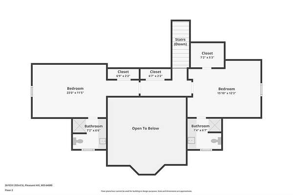 From Lee's Summit, East on 50 Hwy to 7 Hwy South. Turn right on 203rd Street. Go 0.7 miles and the house will be on your left. Turn down the long drive way and park in the drive. The key lock box is on the front door.