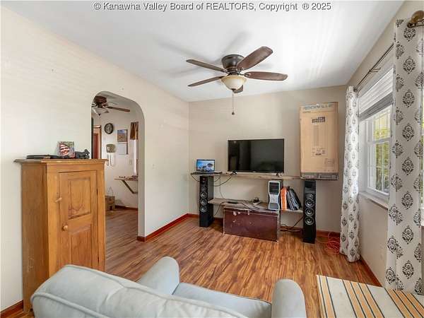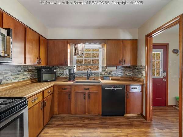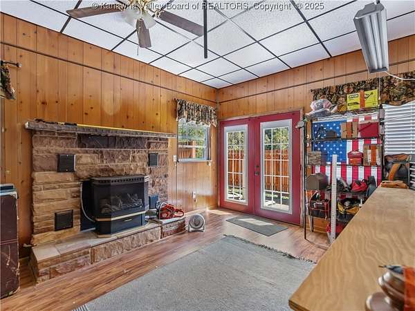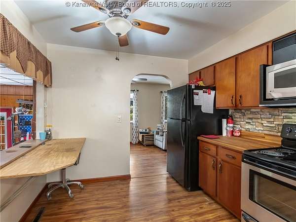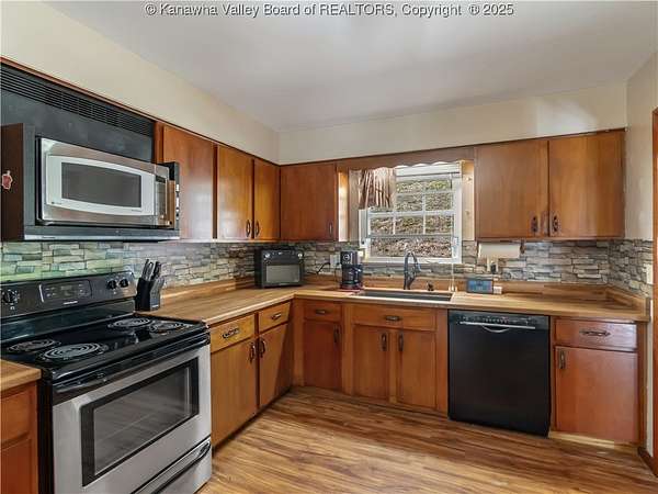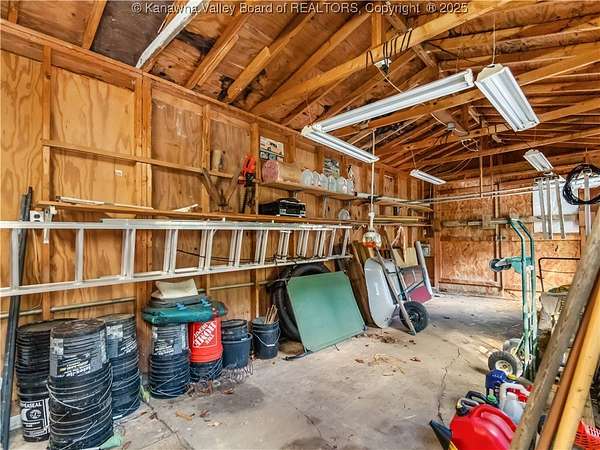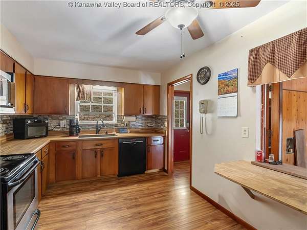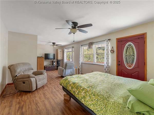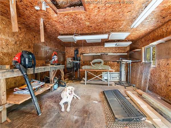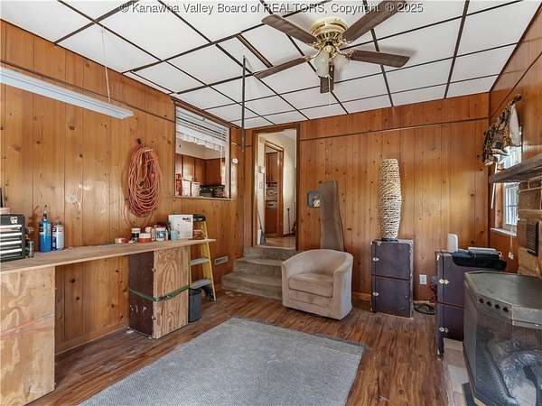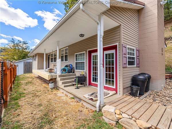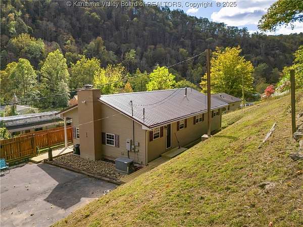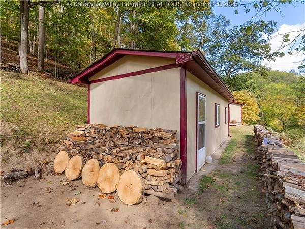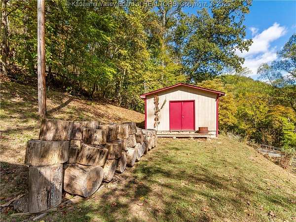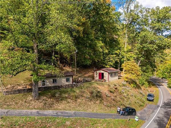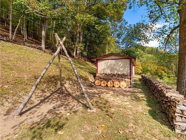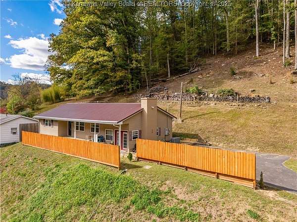 Tucked away in one of West Virginia's most scenic areas, this single-level home sits on over 3 peaceful acres surrounded by natural beauty. The location is a dream for anyone who loves the outdoors - with nearby state parks, miles of walking trails, and even a historic train car attraction that tours the old railroad lines. The property itself features a private walking trail, multiple workshop sheds, and a partially fenced yard for added privacy. Inside, the home offers a warm rustic feel, highlighted by a kitchen with butcher block counters and an open window overlooking the cozy den. The bathroom is beautifully updated and features heated floors for year-round comfort. With its wooded setting and quiet surroundings, this home is perfect for those looking to slow down and enjoy single-story living in a peaceful, nature-filled environment.