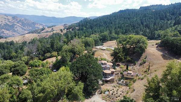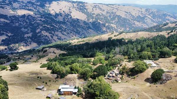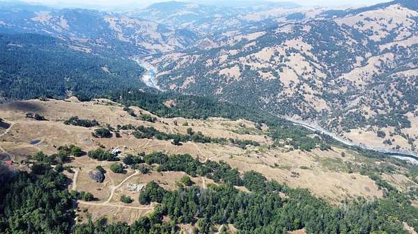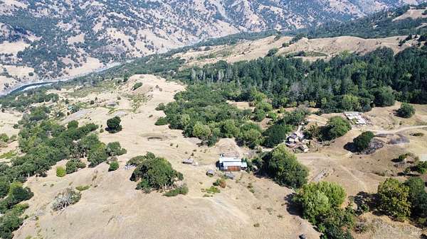 160 acres with a large main house, gigantic three-story barn, multiple cabins and outbuildings, 3 springs, and 8 ponds. Perched above the Eel River with expansive views along the canyon to Island Mountain and the distant Yolla Bolly Wilderness, this remote gently rolling wide-open property is dotted with majestic oaks, panoramic knolls and rock outcroppings. With plentiful water, lots of usable terrain, extensive fencing, established roads, and multiple houses, barns and outbuildings, this property has everything you need for homesteading, ranching, farming, hunting, fishing, or just a quiet peaceful place to relax and watch the eagles soar along the river on sunny afternoons. The Mediterranean-style main home features stucco, tile, and extensive windows. It needs some TLC and finishing, but in the right hands will finish out into a large, beautifully situated residence. The large barn, 2 cabins, and numerous outbuildings offer an array of options for caretakers, income, or family compound. 1.5 hours from Garberville/Hwy 101.
