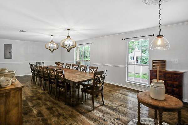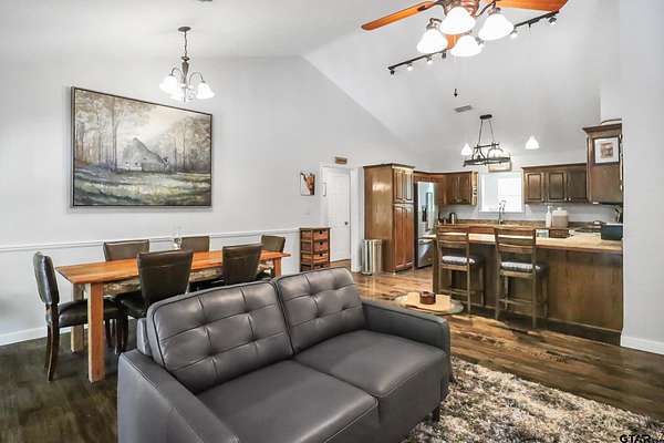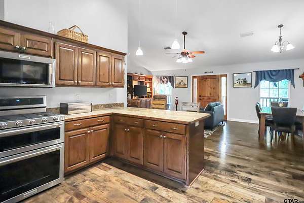 Welcome to your dream country escape! Nestled on 8.75 beautifully maintained acres just minutes from Tyler, Lake Palestine, and the charming community of Edom, this versatile property offers a rare blend of space, functionality, and rustic charm. The main home features five spacious bedrooms and 2.5 bathrooms, with dual living areas and full kitchens on both the first and second floors--perfect for multigenerational living, guests, or entertaining. The home is freshly painted with new flooring installed, including real hardwood floors, ceramic tile, and Berber carpet in the master suite. Keep your possessions secure in the built-in safe. The kitchens have all new appliances upstairs, and the downstairs appliances are like new. Enjoy morning coffee on the covered porches or take in sweeping views from the second-story balcony. Outside, the land is thoughtfully cross-fenced with stock fence and ready for livestock or horses, complete with a horse stall barn and dog kennel. A garden setup is in place and ready for your green thumb, and an unfinished guest house offers exciting potential as a rental, studio, or additional family space. Additionally, an RV hookup is installed for extended stays. Whether you're seeking a serene homestead, hobby farm, or investment opportunity, this property delivers space, privacy, and proximity to local amenities. Don't miss your chance to own a unique slice of East Texas paradise!