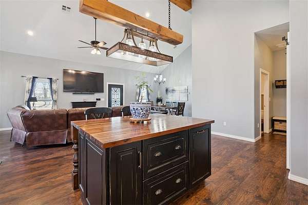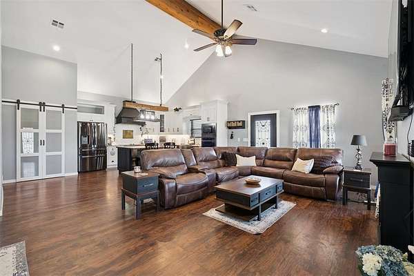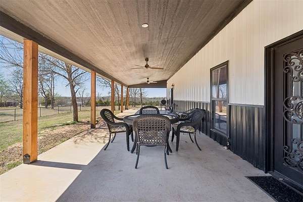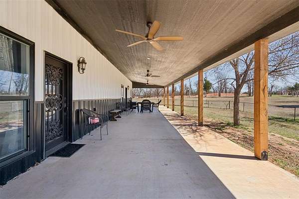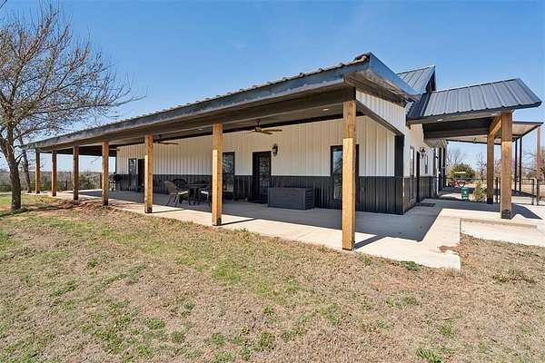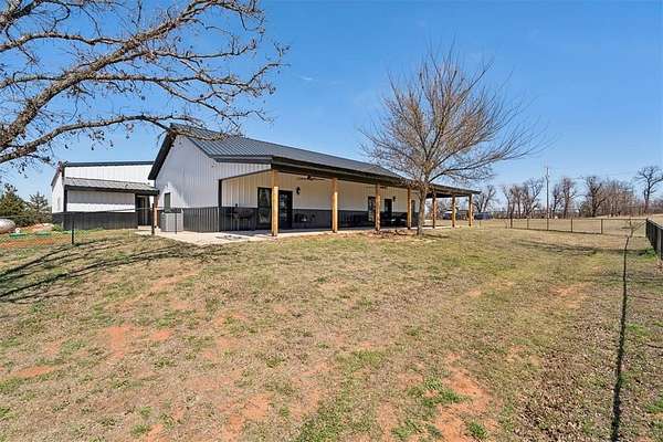 Beautifully Constructed Barndominium on 5 Acres in Blanchard, OK | Shop + Living Quarters + RV Hookup + 5 Acres! Rare opportunity to own a versatile barndominium / shop house with plenty of land offering the perfect combination of modern living, workspace, and acreage in the sought-after Blanchard area. The main home features 1,950 SQFT of living space with an open floor plan, vaulted ceilings, wood flooring, and abundant natural light. The spacious living room flows seamlessly into a beautifully designed kitchen with granite countertops, custom cabinetry, stainless steel appliances, large island, and farmhouse sink-ideal for entertaining or everyday living. This property truly stands out with a massive 3,600 SQFT insulated shop/garage featuring two oversized overhead doors, perfect for RV storage, boats, equipment, business use, workshop, or hobby space. Inside the shop is an additional ~1,000 SQFT of living quarters, ideal for a guest house, rental income opportunity, home office, small families, or multi-generational living. Property also includes a full RV hookup, adding flexibility and long-term value. Enjoy peaceful country living from the covered wrap-around porch/patio, perfect for relaxing, entertaining, or taking in Oklahoma sunsets. The 5-acre lot offers endless potential-build a shop, pool, barn, or additional structures, bring animals, or create your own private retreat. A below-ground storm shelter provides added safety and peace of mind. Highly desirable features include newer construction, acreage property, barndo, shop building, additional living space, RV parking, open concept layout, modern farmhouse style, and no HOA. Ideal for buyers seeking country living in a great part of Central Oklahoma, investors looking for income-producing potential, or anyone needing space for work, storage, and lifestyle combined. Properties with this combination of home + shop + land + additional living quarters are extremely rare and don't last long!