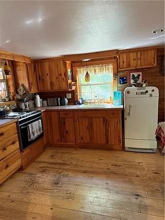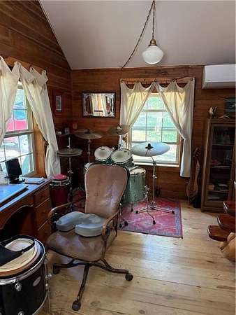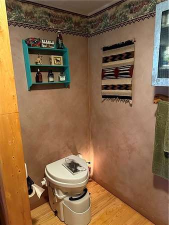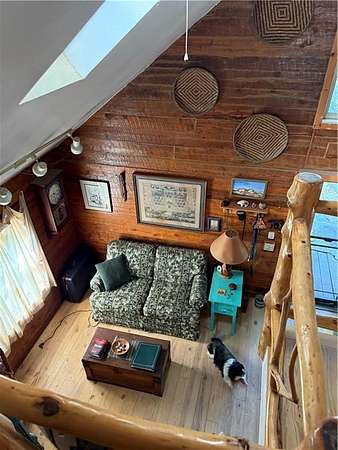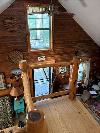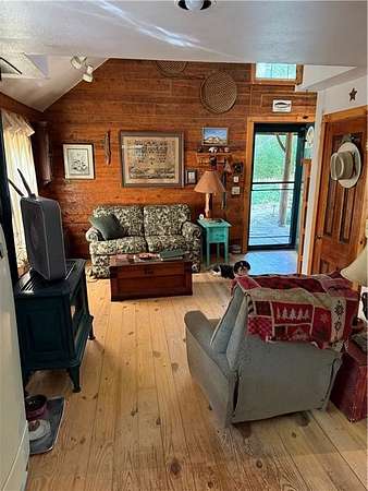 Log Home has beautiful yellow pine floors, loft bedroom, full bath (with composting toilet). A small creek runs through the property.