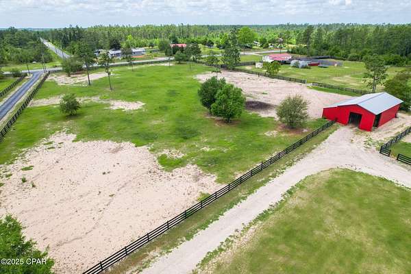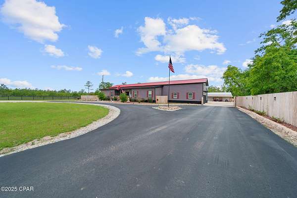 CURRENTLY UNDER CONTRACT, SELLER WILL CONSIDER BACKUP OFFERS Escape to your own private retreat on 21.5 acres of pristine countryside, just north of the Bay County line in beautiful Calhoun County. This one-of-a-kind property offers the perfect blend of peace, privacy, and recreation-all just 25 minutes from Panama City and 20 minutes from I-10, right at the Marianna cut off. (Hwy 167) Built in 2021, the expansive 4,200 sq ft home features 4 bedrooms, 3.5 bathrooms, and a dedicated home office. The craftsmanship is second to none-constructed with solid 8x8 and 4x4 posts and secured with 3-inch screws, this home was built to weather the toughest Florida storms. From thoughtful design to durable construction, every detail was built with purpose. Step inside to spacious living areas or head out back where life really shines-grill out, shoot some pool, or kick back with a cold drink and soak in the serenity. The home is tucked away from the paved, county-maintained road for added seclusion and security. A Generac generator and full home security system offer peace of mind year-round. For equestrian lovers, this property is a dream come true-15 fenced acres, four lush pastures, a 4-stall horse stable with tack room, a horse corral, and a separate cow corral. Additional features include multiple enclosed garages, a covered RV pad with 50-amp hookup and dump station, and a dedicated pad already equipped to add a mobile home. Whether you're looking for a family homestead, a hobby farm, or simply a place to live a peaceful, outdoor lifestyle, this property has it all. Schedule your private tour today and discover everything this remarkable estate has to offer.