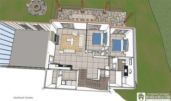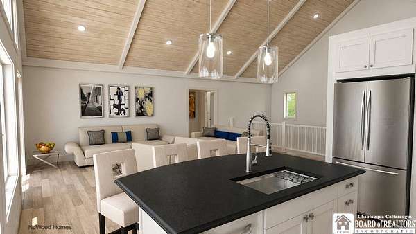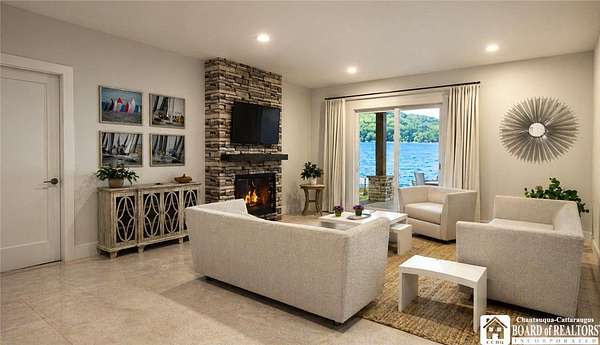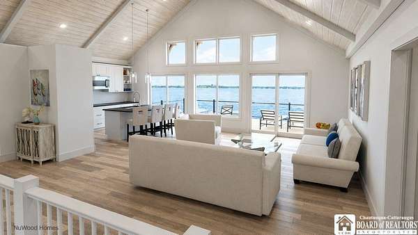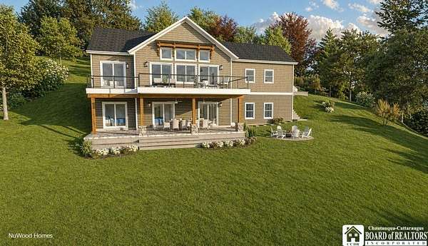 This Lake Front architectural home can be built with your finishing touches. Offering the rare combination of privacy, acreage, and modern design-set on 3.60 acres with expansive water views. This thoughtfully designed 3-bedroom, 2.5-bath home with a 2-car attached garage delivers an open-concept layout and the flexibility today's buyers are looking for. The main level features a bright, open floor plan with a spacious great room and a well-appointed kitchen complete with a large island, quartz countertops, and quality finishes throughout. The first-floor primary en-suite is perfectly positioned to take in lake views, offering both convenience and a true retreat feel. Step out onto the oversized deck-ideal for entertaining or simply enjoying the setting. The walkout lower level adds exceptional living space with two additional bedrooms, a full bath, and a generous entertainment area with a gas fireplace and kitchenette-perfect for guests, extended stays, or multi-generational use. Sliding doors lead to a covered patio, seamlessly connecting indoor and outdoor living. An additional 533 sq ft of unfinished space provides excellent storage or the opportunity to expand-ideal for a home office, fitness area, or additional living quarters. Set on a private parcel with room to breathe, yet located just minutes from shops, restaurants, and local amenities, this property offers the best of both worlds-seclusion without sacrificing convenience. A rare opportunity to own a lakefront spec home with space, views, versatility.