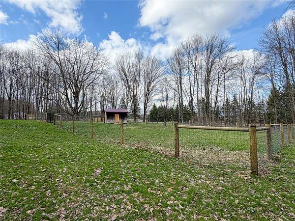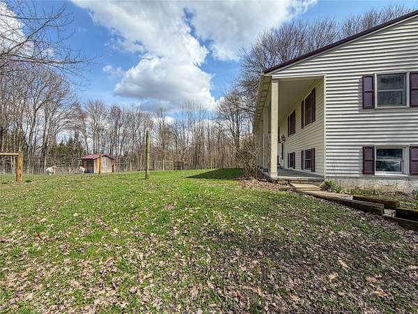 Country & rural living, hobby farm in NW PA on 4.15 acres! Inside, you'll find thoughtful updates throughout. The entire upper level has been freshly painted. The primary suite offers added versatility with a bonus room-ideal for a home office, nursery, or private retreat. The en suite bathroom includes a safety step-in tub for easy accessibility. Newly installed back gutters, security system & deck-w/stairs to access backyard. The garage features new drywall. The finished lower level is heated w/a pellet stove. A new iron buster, & water softener with UV light were installed, enhancing water quality for the home. This unique property is perfectly set up for hobby farming, featuring an animal shed & 2 pastures for easy animal rotation. The fencing includes durable woven wire with a solar-powered hot wire system, for energy efficiency. If you've been looking for a property that combines practical upgrades w/the charm of country living, this one is ready to welcome you home.