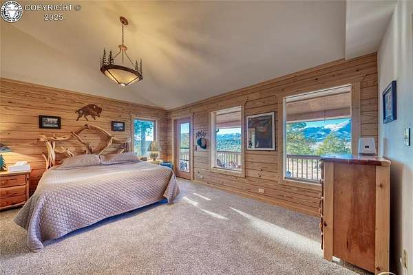 Welcome to Pinecone Corner, a charming 4-bedroom, 3-bath, three-level log home nestled in the trees with stunning mountain views on over 35+ acres. Step into a beautiful entryway filled with natural light from soaring cathedral windows in the living room. The wide-open main level features cozy seating around the fireplace and an eat-in kitchen with a spacious island that opens to the living area, adorned with many pinecone figures collected over the years. Large windows and doors lead to a deck showcasing breathtaking mountain views, while a quaint dining area sits just off the kitchen. The main floor offers two bedrooms and a full bath, plus a primary with ensuite and beautiful walkout deck. Upstairs, enjoy a loft-style sitting room or office with mountain views. The lower level boasts a large open space ideal for a game room with dry bar, walkout to a patio and fenced yard, a fourth bedroom, full bath, and access to the oversized two-car garage. Walk your very own hiking trails that wind through the wooded property. Whether you're seeking a full-time residence, vacation home, or serene escape, Pinecone Corner offers space, serenity, and unforgettable mountain living.