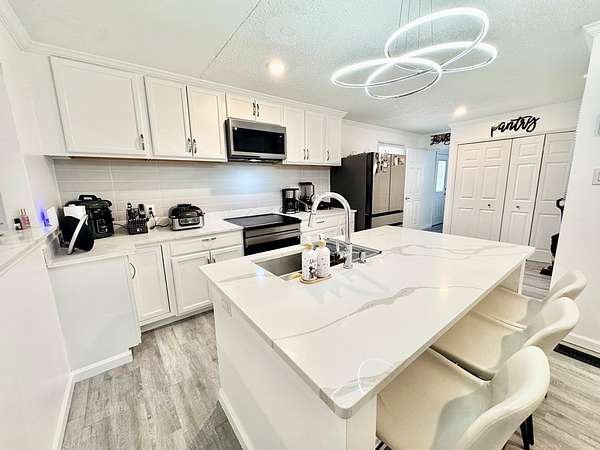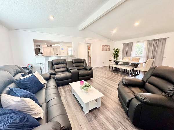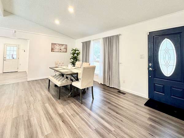Spacious and beautifully renovated 4-bedroom, 3-bath ranch-style home situated on a manicured 3.75-acre lot. This move-in-ready property has been completely updated from top to bottom, featuring a stunning kitchen with brand-new appliances, elegant marble countertops, and modern recessed lighting. The bathrooms have been fully renovated with stylish glass doors and luxury vinyl flooring throughout the home. The extra-large primary suite offers generous walk-in closets and a private en-suite bathroom for added comfort and privacy. Additional highlights include a spacious two-car garage, plus an additional two-car carport for extra parking or storage. Enjoy outdoor living and entertaining on the back deck overlooking the expansive property. A wooden storage shed provides additional space for tools or equipment. Major upgrades include new plumbing and a new air conditioning system for peace of mind. The home is serviced by a two private well and sits on a beautifully maintained 2.11-acre lot, offering both space and privacy.