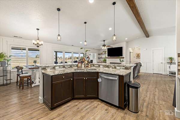 Beautiful single-level home featuring 3 bedrooms, an office, and formal dining. Spacious great room with pellet stove, mantel, and built-in shelving. Stunning kitchen with granite countertops, breakfast bar, full tile backsplash, stainless steel appliances, double oven, side-by-side refrigerator, and large pantry. Separate family room with ceiling fan, additional living space. Large primary suite with ceiling fan, walk-in closet with rods and shelving, soaker tub with tile surround, and dual sinks. Enjoy the covered back patio with eastern exposure-perfect for morning sun and evening shade. Fully fenced with vinyl fencing and cross-fenced, ideal for horses or livestock. 30x44 shop included and concrete pad already poured. Estimated completion in approximately 45 days. No HOA