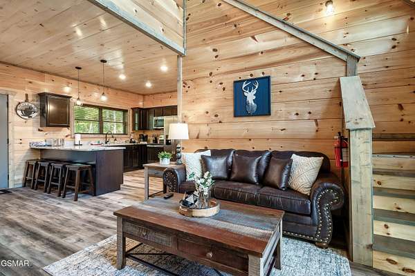 Experience the ultimate smoky mountain lifestyle in this stunning, newly constructed (2022) cabin that perfectly balances secluded serenity with unbeatable proximity to the heart of the Smokies. Tucked away on a quiet, private road, ''Smoky Mountain Paradise'' offers a rare level of peace and quiet, yet remains a stone's throw from the vibrant energy of Gatlinburg. This property sits on over 3 acres of private, wooded land and already features an established walking trail for guests to enjoy. With this much acreage, there is significant potential to expand the trail system, creating a truly unique and attractive outdoor amenity that sets this rental apart from others in the area. Location is everything. Situated just 7 miles from the Gatlinburg Strip, you are minutes away from world-class dining and entertainment. Even closer is the historic Great Smoky Arts & Crafts Community, allowing you or your guests to explore local heritage and handmade treasures just down the road. For the outdoor enthusiast, the entrance to the Great Smoky Mountains National Park is a convenient drive, making this the perfect home base for adventure. This isn't just a cabin; it's a private resort designed for entertainment and relaxation across three thoughtfully planned levels. The star of the show is the heated indoor pool, allowing for swimming 365 days a year regardless of the weather. Step onto the expansive back decks to find a luxury hot tub and rocking chairs where you can soak in the mountain breeze and wooded views. Keep the energy high in the dedicated lower-level game room featuring air hockey and a multi-cade arcade cabinet. The interior features a sleek, fully equipped kitchen with stainless steel appliances and a cozy living area with a big-screen TV. With 4 spacious bedrooms and 3.5 baths, this cabin comfortably sleeps 8. The layout includes two King masters, a Queen room, and a bunk room--each equipped with its own flat-screen TV and easy bathroom access. Whether you are looking for a breathtaking second home or a high-performing short-term rental, this property delivers. The cabin is currently a successful rental with a stellar 4.67-star rating. It comes turn-key and ready to continue generating income from day one. Don't miss your chance to own a piece of the Smokies where privacy meets convenience.