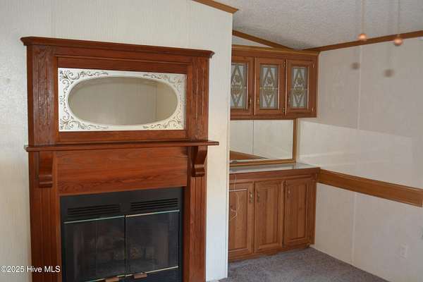 - Blinds/Shades, Ceiling Fan(s), Gas Log, High Ceilings, Pantry, Walk-In Shower