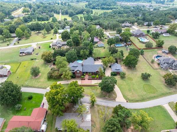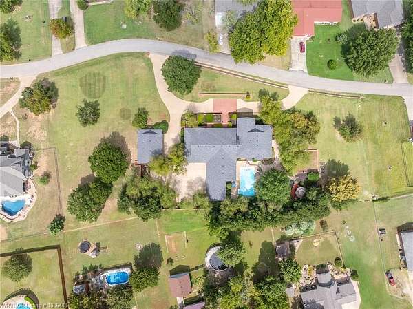 Set on over 2 acres in peaceful Shadow Lake Estates, this 6-bed, 6.5-bath brick home offers nearly 7,900 SF of classic charm and modern updates. The upper level boasts a master suite with new carpeting, a remodeled master bath, and an expansive walk-in closet with custom built-ins, shelving, and a center island. A washer and dryer area adds convenience. The master's wrap-around balcony offers serene lake views, perfect for bird watching and enjoying Arkansas sunsets. The main floor exudes elegance, with rich hardwood flooring, fresh paint, and a cozy fireplace welcoming you into the spacious living areas. Four bedrooms, each with private baths, offer comfort and privacy. New thermostats and an ADT security system ensure efficiency and safety. The bar and entertainment area, with large windows, flows into the outdoor space, ideal for gatherings. In the kitchen, custom cabinetry, Sub Zero appliances, double ovens, a new Bosch dishwasher, and a gas cooktop-equipped island make cooking a breeze. The adjoining breakfast nook, with a charming ceiling, adds a touch of elegance. A sunroom nearby offers a bright, peaceful space for relaxing with views of the lush backyard. The lower level impresses with a media/theater room, gym, safe room, and two additional rooms with a full bath and second laundry/kitchenette. Outside, enjoy a Burton 10' diving pool, hot tub, and built-in grill. A new pool pump ensures smooth operation. The gazebo, near the koi pond, provides a tranquil escape. With a 4-car attached garage, 3-car detached garage, and circle drive, there's plenty of space for family and guests. Scenic lake views, private access to the community lake, and courts for tennis/pickleball complete this estate, offering a blend of natural beauty and luxury.