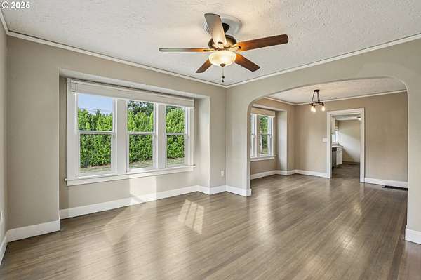 - Ceiling Fan, Hardwood Floors, Laundry, Vinyl Floor, Washer Dryer