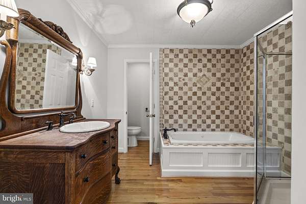 Welcome to a truly one-of-a-kind homestead where lifestyle, sustainability, and natural beauty come together in perfect harmony. Nestled on a picturesque property with a serene stream, this thoughtfully designed residence offers over 4,400+ finished square feet and an extraordinary outdoor experience you simply won't find elsewhere. Inside, the home has been freshly painted, features refinished hardwood floors, and a beautiful open kitchen creating a warm, clean, and move-in-ready space. A stunning wood-burning stone fireplace with a mantle serves as a cozy focal point. With 4 bedrooms (including 2 oversized primary suites), 3 full baths, and a fully finished lower level, there is room to live, gather, and grow-whether you're hosting, working from home, or creating a multi-generational living space. Outdoor living is just as impressive. The expansive deck and screened porch-each approximately two-thirds the width of the home and generously sized-offer incredible spaces to relax or entertain while taking in the peaceful surroundings. Enjoy the soothing sounds of a custom-built waterfall with large stone steps, perfectly positioned between the home and detached garage, creating a tranquil setting that can be heard from both the deck and screened porch. A private patio with direct access from the secondary primary suite provides a quiet retreat, while a convenient covered potting area with water access adds ease and function for gardening enthusiasts-all thoughtfully positioned just steps from the home. But what truly sets this property apart is what awaits outside... Step into your own private food forest and garden oasis, carefully cultivated with an incredible variety of fruiting trees, shrubs, and perennial harvests. Enjoy seasonal abundance from: Peach (white & yellow), Nectarine Apple (McIntosh, Fuji, Gala) Pear (Bosc & Bartlett) Cherry (Rainier, Bing, sour & bush varieties) Grapes (Concord, green & blush table) Elderberry (Nova & York), Currants (black, red, white) Hazelnut & Walnut Raspberry (red, black, yellow) & Blackberry Persimmon (American & Japanese) Asparagus (purple & green), multiple Fig varieties For the culinary enthusiast or homesteader, the property also features a gourmet mushroom growing area near the stream, including multiple varieties of shiitake, oyster, and lion's mane, along with wine cap mushrooms seeded throughout the garden-producing fresh harvests throughout the year. Animal lovers will appreciate the impressive Amish-built chicken coop (approx. 8x28) designed to accommodate up to 70 birds, complete with a metal roof and gutter system for water collection, predator-proof enclosed run, multiple access points, attached storage, and an easy-clean design. Whether you're dreaming of a self-sustaining lifestyle, a hobby farm, or simply a peaceful retreat with unmatched outdoor amenities, this property delivers. Located in the heart of Carroll County, this home offers the perfect balance of privacy and convenience-just minutes to downtown Westminster with local shops, restaurants, and community events, close to McDaniel College, parks, farms, and scenic countryside, with easy access to Baltimore, Frederick, and southern Pennsylvania. Enjoy the charm of rural living with everyday essentials just minutes away. This isn't just a home-it's a lifestyle property. From the mature orchard and garden space to the thoughtfully designed outdoor features and beautiful natural setting, every detail has been curated for those who value sustainability, self-sufficiency, and connection to the land.