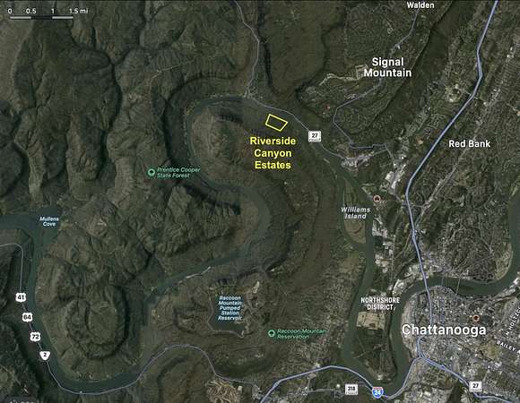 Welcome to Riverside Canyon Estates on the Tennessee River, an exquisite waterfront community crafted by Chattanooga's most respected Architect-led design-build firm, A Perry Homes. Come home to luxury immersed in nature with this 3,371 sf domestic retreat, meticulously designed to seamlessly blend with the surrounding natural environment, offering an unparalleled level of architectural excellence and craftsmanship. Primary bedroom on main level with Office/Den and two bedrooms on second floor. Lot 9 is 5 acres and offers a breathtaking water view. This property comes with dock access and dramatic elevated views of the Tennessee River Gorge. The community offers the opportunity to live the river life, offering enchanting blend of waterfront and water view lots, providing a water-oriented living experience. Imagine boating to Chattanooga for restaurants, arts, or even your daily commute! Don't miss out on this extraordinary opportunity - contact us today to schedule your private viewing and embark on a journey to make Riverside Canyon Estates your new home.