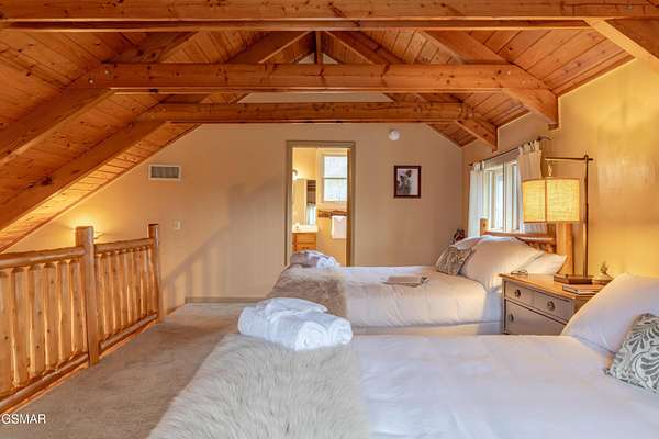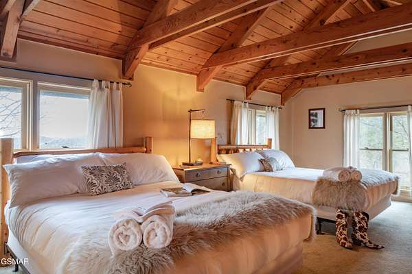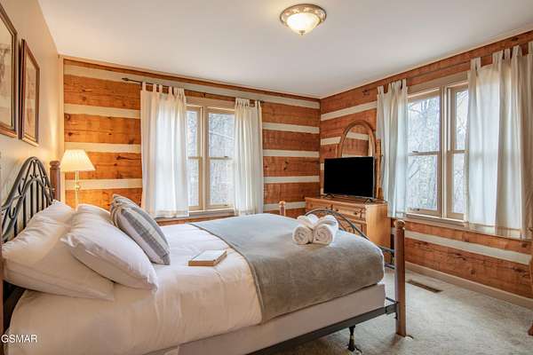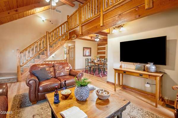 Experience the ultimate Smoky Mountain investment with this high-capacity retreat and development portfolio, all in one transaction. Nestled in the prestigious gated community of Shagbark, this property is a strategic powerhouse boasting $85K+ in annual projections and eligibility for 100% Bonus Depreciation. To make ownership even more accessible, the seller is offering creative financing options and a $5,000 credit at closing to install a brand-new hot tub. The value here is unmatched, as the sale includes three additional buildable lots that convey with the home, allowing you to either maximize your ROI through future development or maintain total acreage for the ultimate private cabin experience. The approach to the cabin is just as impressive as the investment potential, featuring a scenic drive along a creek that leads to a level, paved parking area capable of accommodating multiple vehicles. Inside, the massive floor plan is perfectly optimized for a short-term rental, highlighted by a stone fireplace, rustic decor, and generous living space. The home's expansive square footage includes versatile bonus rooms ideal for a game room, home theater, or bunk room, while the screened-in back deck ensures all-day entertainment regardless of the weather. Surrounded by trees and professional landscaping that enhance both security and privacy, you are just minutes from top attractions while enjoying world-class community amenities including: a swimming pool, tennis courts, a playground, a pavilion, dog park, basketball court and the peace of mind of 24-hour security.