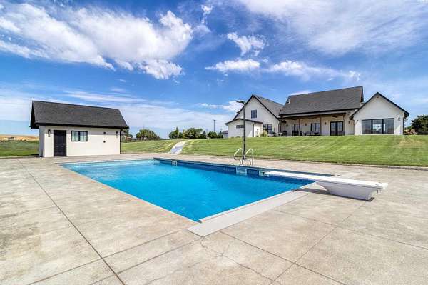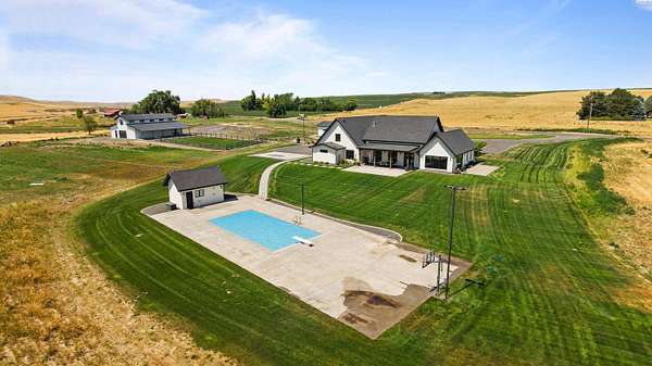 MLS# 285697 Experience luxury country living at its finest! This 6 bed, 5 bath modern farmhouse sits on nearly 12 irrigated acres with a stunning open-concept layout, gourmet kitchen, and main-level primary suite. Enjoy an in-ground pool, sports court, pool house with sauna, and covered patio perfect for entertaining. A new shop, RV parking, and recent upgrades, including a heated/cooled 3,360 sqft barndominum with 1 bed/1 bath and 900 sqft of living space above, 2 stalls, kitchen area and office etc. below add value and versatility. Just 20 minutes from Walla Walla in a private setting, this turnkey retreat blends upscale living with rural charm—ideal for multigenerational living, hobby farming, company retreats or just peaceful countryside living.