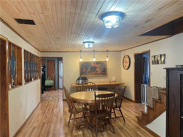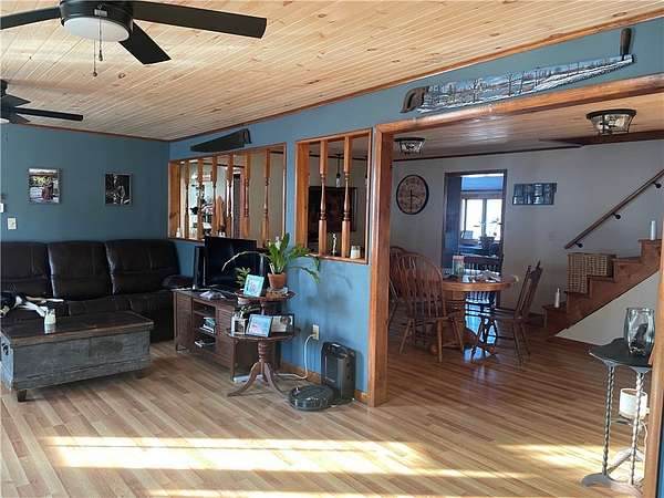Exceptional 13.8-acre working farm with extensive Chenango River frontage, offering a rare blend of historic charm, productive land, and well-equipped farm infrastructure. Enjoy watching the resident bald eagle and abundant wildlife from your own property, making this a true nature lover's retreat. The land is adjacent to many acres of productive alfalfa fields, garden space, and a fenced riding arena, ideal for equestrian use. Approximately 3 acres of invisible fencing are in place for dogs, adding convenience for pet owners. A storage building provides additional space for equipment and supplies. The impressive three-level barn features horse stalls, pig and sheep pens, parking for additional vehicles, and a shop area. The barn also includes a heated kitchen room with propane heat and stove, its own septic system, and 100-amp electric service, offering outstanding versatility for farming, hobbies, or gatherings. The residence is an 1890 two-story farmhouse with numerous improvements, including new laminate floating flooring, an updated kitchen, and a full bathroom. The main level offers an open-concept living and dining area, a family room with pellet stove, a main-floor bedroom, an office, and a half bath. Upstairs are three additional rooms, including a bedroom, a hobby room, and a dressing room, plus pull-down attic stairs for convenient storage. With river frontage, open acreage, and thoughtfully designed farm amenities, this property is ideal for a working farm, equestrian operation, or private rural retreat in scenic Chenango County.