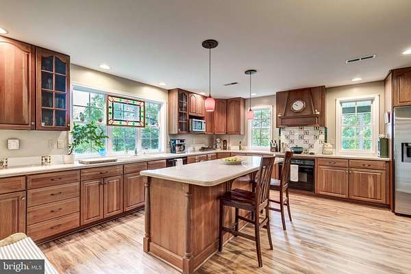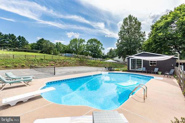 *True opportunity to own your 5BR 3.5Baths dream farmette with modern home updates, & an entertainer's delight with in ground pool, sport court, barn, detached garages, & in law accessory dwelling*Also suited for multi-generational living*The main home remodeled in 2001 boasts foyer, updated half bath, mud room, cozy living room, open concept family room with gas fireplace that flows to the updated huge kitchen with upgraded counter tops & island*Formal Dining room for special occasions*Upper level has an recently remodeled primary suite with vaulted ceilings, custom stone work decorative fireplace, a primary bathroom with luxurious tiled walk in shower/double sinks remodeled in 2024, another full bath, & 3 other bedrooms all with wide plank luxury vinyl flooring*Lower level is ideal for storage & houses the geothermal system which saves thousands on your utility bills*3 zones of HVAC help with additional efficiencies*Connected through a breezeway across the paver patio is a bonus room that could function as yet another bedroom or office space*An additional special feature is the newly renovated in-law apartment attached to the barn complete with open concept kitchenette, living room, bedroom, & another updated full bathroom*Once outside, enjoy true "resort type" living with a beautiful paver patio, covered front & rear porches, a large in-ground pool with adjacent pool house, & a full size sport/tennis court*Above this is field space for your animals or farming needs*Sellers own the expansive solar units which help energy needs*This area is also fenced as it is currently home to 2 donkeys*In the past, sellers have planted crops and wild flowers on the hillside*Truly an amazing opportunity*Manchester Valley School Zone*