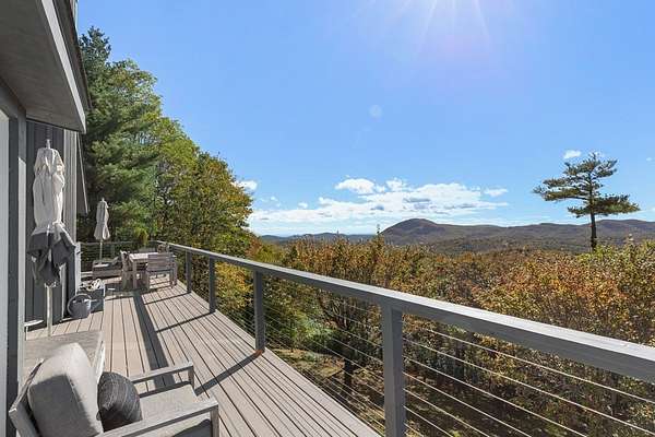 Perched atop Big Sheepcliff in Cashiers, this inviting 3-bedroom, 4-bath home offers breathtaking mountain views and refined updates. This serene mountain sanctuary, the personal residence of an interior decorator renowned for her curated, eclectic design aesthetic in private homes, reflects her refined eye throughout the home's textures, colors, and layered details. Recent renovations, including a new deck and refreshed sunroom, blend timeless mountain character with modern comfort. The great room features vaulted ceilings, abundant light, and a gas fireplace, flowing into a well-appointed kitchen with a built-in refrigerator, gas range, and double oven. A window-lined dining area frames long-range vistas. The primary main-level suite includes 2 full baths, a sitting room, and sunroom access. Two guest rooms -- one on each level -- each enjoy a full bath. A main-level bonus room provides flexible use, while the lower-level workshop is ideal for hands-on projects or storage. The nearby picturesque community meadow and a mountaintop pavilion complete the setting. Experience elevated mountain living in one of Cashiers' most scenic locations - schedule your private tour today!