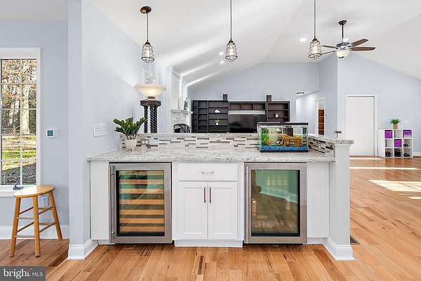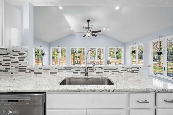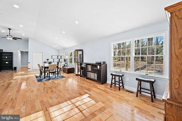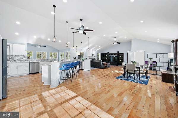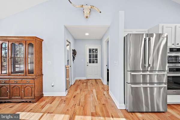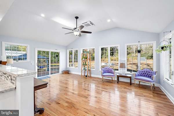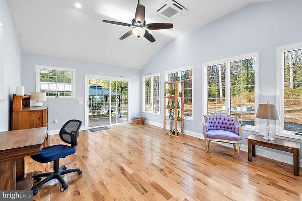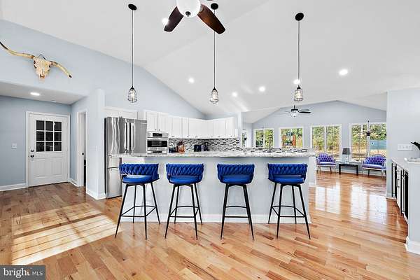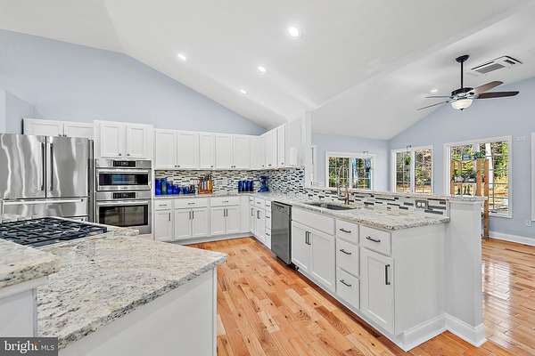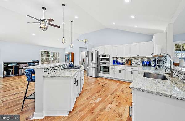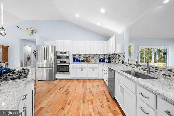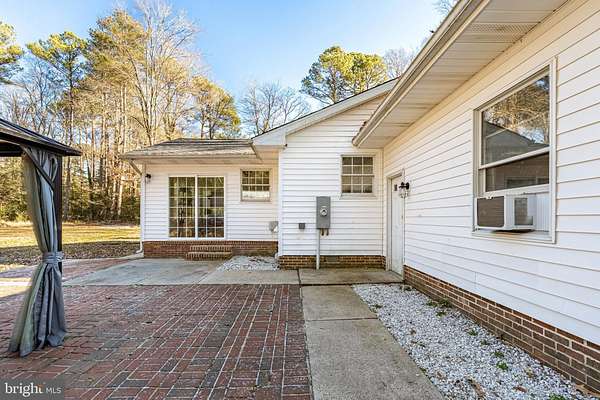 Nestled on a picturesque, wooded lot in a desirable waterfront community, this home offers the perfect blend of privacy, style, and modern comfort. The rancher style 3-bedroom, 3-full-bath home spans 2,430 square feet and has been recently renovated with thoughtful upgrades throughout. The open-concept main living area features cathedral ceilings, hardwood floors, and a striking brick wood-burning fireplace, creating a warm and inviting atmosphere ideal for both everyday living and entertaining. The gourmet kitchen is a standout, equipped with stainless steel appliances, a gas cooktop, wall ovens including a steam oven, microwave, beverage refrigerator, and wine cooler. A large breakfast-bar island and abundant cabinetry complete this chef-inspired space. A light-filled sunroom with expansive windows overlooks the backyard and nearly two-acre lot, offering peaceful views of nature year-round. Updated bathrooms feature tile surrounds, with a large soaking tub in the hall bath. The home also includes a separate laundry room with cabinetry and a Speed Queen washer and dryer. Outside, enjoy a circular driveway, brick patio with cabana, ample space for a firepit, a 10x12 shed, raised garden beds with five newly planted apple trees-perfect for outdoor living and gardening enthusiasts. Located in a waterfront neighborhood with convenient proximity to the ferry crossing of the Wicomico River, this property offers a rare combination of tranquility and accessibility. A truly special home that must be seen to be appreciated.