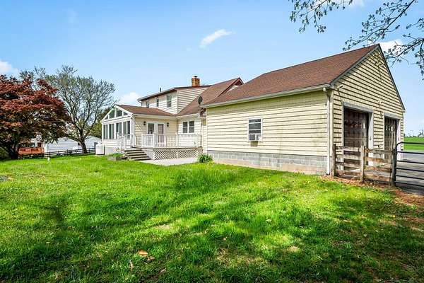 Welcome to 2619 Bradenbaugh Road. This charming Cape Cod tucked into one of the most peaceful settings you could imagine-a true rural Harford County gem, surrounded by preserved farmland and scenic views in every direction. Lovingly maintained by its original owners for the past 45 years, this home is filled with warmth, character, and a story worth continuing. From the moment you arrive, the home's curb appeal sets the tone-featuring stunning stonework accents, shake-style vinyl siding that adds dimension and charm, and a welcoming front porch that invites you to slow down and stay awhile. It's the perfect place to unwind with a set of rocking chairs and take in the quiet beauty of the countryside. Step through the mahogany front door into a cozy foyer, where you're welcomed by a spacious living room to your left, highlighted by a beautiful bay window that fills the space with natural light. The traditional layout offers both functionality and charm, featuring an eat-in kitchen and a formal dining room at the heart of the home-perfect for everyday living and gatherings alike. The main level also includes two comfortable bedrooms, a versatile den or office, and a full bath with a walk-in shower, offering flexibility for a variety of lifestyles. Just off the kitchen, the expansive sunroom is truly a showstopper-an inviting space to relax year-round, with direct access to a composite deck overlooking the large, fenced backyard. Upstairs, you'll find two generously sized bedrooms and a second full bath, including one bedroom with an oversized walk-in closet. The unfinished basement provides endless potential-whether you envision additional living space, a workshop, playroom, or simply need ample storage. Laundry is conveniently located here as well, along with a spacious cedar closet. Outside, the setting is just as special. With open space and room to grow, this property is perfectly suited for anyone dreaming of a small farmette-offering ample space for a pasture, animals, gardens, or simply enjoying the beauty of rural living. There are two sheds that convey, one offers access from the driveway, offering idea storage for lawncare items, and the other is 8x18ft and tied in to the fenced back yard, making an ideal spot for a run-in shed for animals! The Generac back up generator offers peace of mind for any unforeseen power outages. A side-loading two-car attached garage adds both convenience and clean curb appeal, complementing the home's thoughtful exterior design. Major updates, including the roof and mechanical systems, have been completed within the past 15 years, offering peace of mind for years to come. This is more than just a home-it's an opportunity to carry on a legacy rooted in care, longevity, and the quiet beauty of Harford County countryside. Don't miss your chance to make it your own.