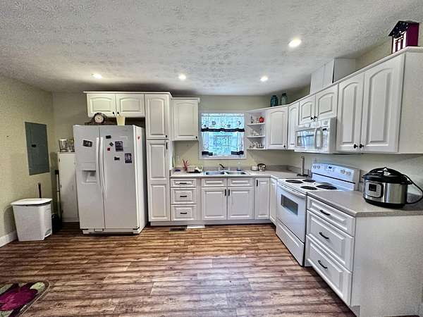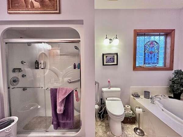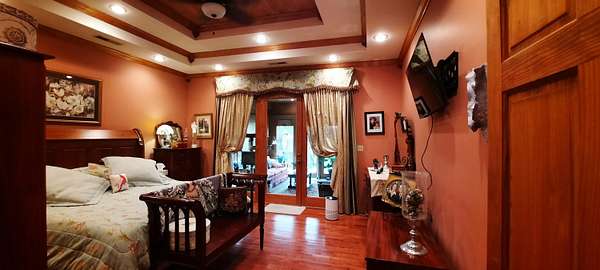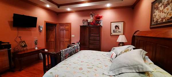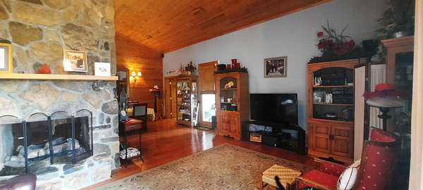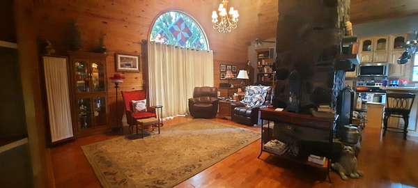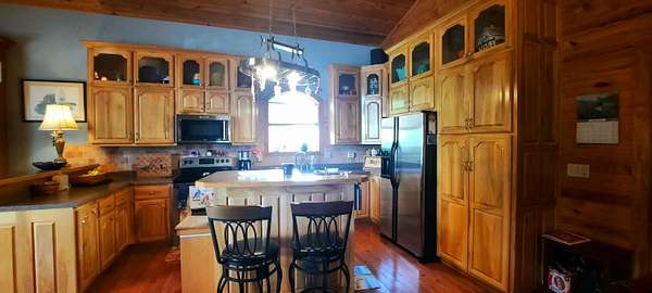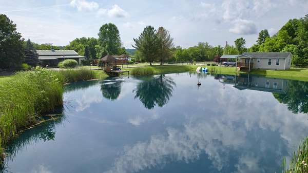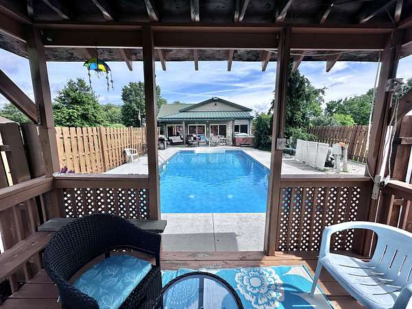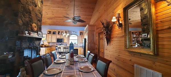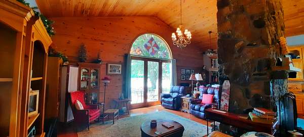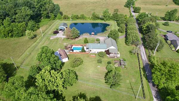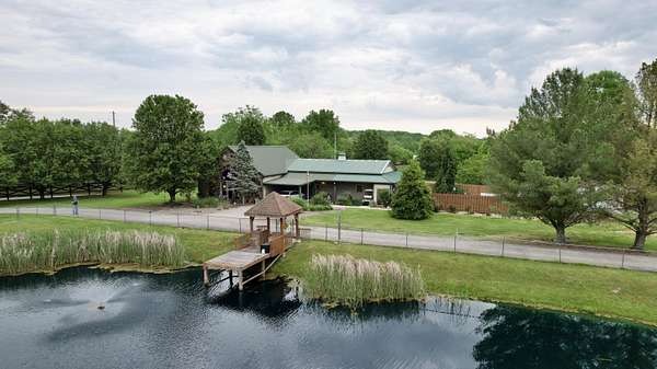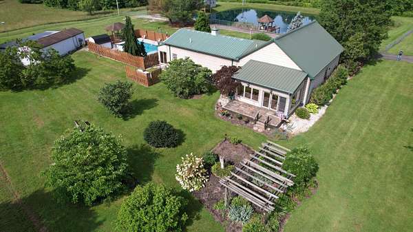 This amazing home on 4.5 acres truly has something for everyone! A springfed stocked pond, an inground pool, and a back field with a bit of forest provides fun for your fisher, swimmer, or animal enthusiast. The many perennials keep your surroundings in bloom through out the seasons. Both houses are accessible without steps. The main home boasts a luxurious primary suite with custom woodwork, a spa-like bath, and a sunroom with a connected deck. Your storm shelter can be accessed from the primary walk in closet. On the other side of the home, a secondary bedroom suite offers a bath, a kitchenette, and a door to a sunroom that opens to the inground pool deck. The great room features a towering two sided stone fireplace, seamlessly connecting the living, dining, and kitchen areas. Beautiful woodwork everywhere! The guest house is complete with 2 bedrooms, and 2 baths. Plus you can fish right off your deck! Some plank and chain link fencing is already in place if you need to bring your furry friends. This home combines luxury, functionality and natural beauty, and may very well be the home of your dreams. Schedule your showing today.