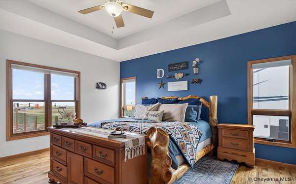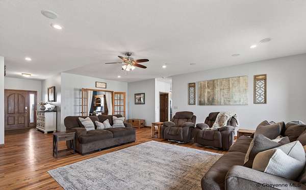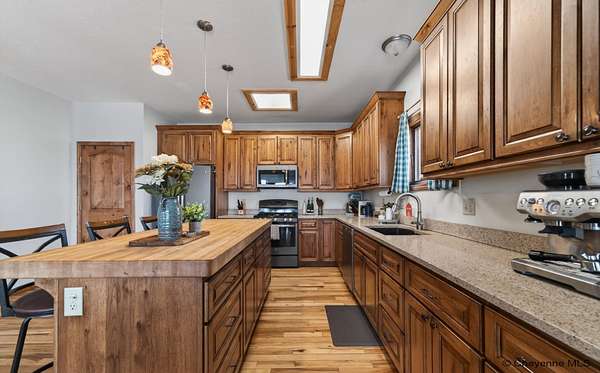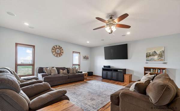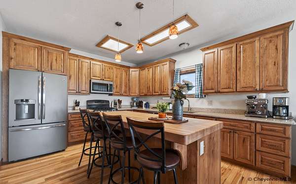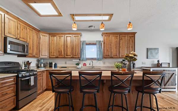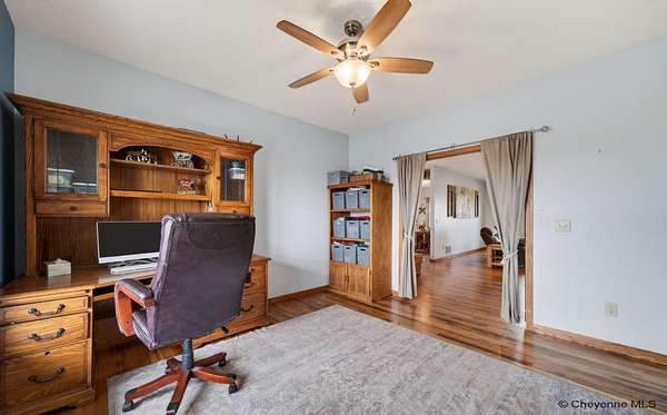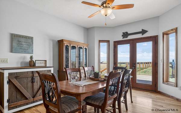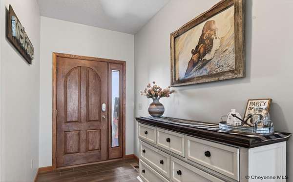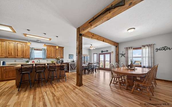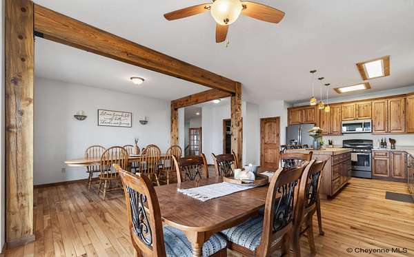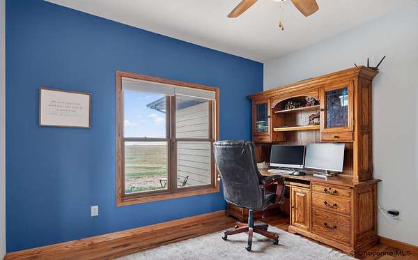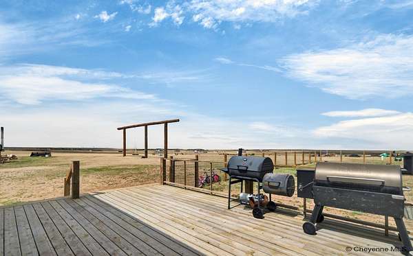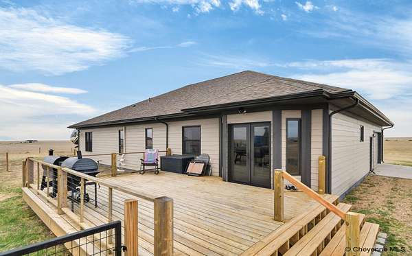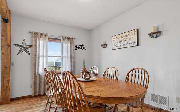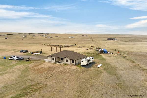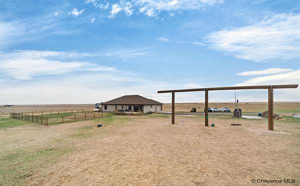 Set on almost 9 acres of Wyoming prairie, this 5-bedroom, 3-bathroom home offers the kind of space, freedom, and self-sufficiency that’s getting harder to find. With panoramic mountain views stretching across nearly every window, this is where quiet mornings, wide-open skies, and unforgettable sunsets become part of your everyday life. Inside, you’ll find beautiful wood floors and rich trim details that bring warmth and character to every room. The layout offers generous living spaces designed for both gathering and unwinding, with room for everyone to spread out and truly feel at home. Outside and you’ll discover a one-of-a-kind swingset built from telephone poles—ready for evening laughs, morning coffee, or simply soaking in the peaceful surroundings. This is a property where memories are made, whether you’re hosting friends or enjoying the stillness of country living. Built with practicality in mind, the home features multiple redundant heating systems to keep you comfortable through even the coldest Wyoming winters. In addition to the forced air furnace, you have the option of using a coal or wood-burning furnace that connects to the boiler system for inexpensive radiant floor heat, and a backup generator provides added peace of mind—because out here, reliability matters. Downstairs, the expansive basement offers incredible storage space—large enough to stock up, stay prepared, and cut down on trips to town. Whether you’re envisioning a home gym, hobby space, or simply unbeatable storage, the possibilities are endless. With no covenants, you have the freedom to truly make this property your own—bring your animals, build your shop, or create the lifestyle you’ve been dreaming of. And with the option to purchase additional acreage, there’s room to expand your vision even further. If you’ve been looking for a place where you can slow down, spread out, and enjoy the life you’ve built—this is it.
